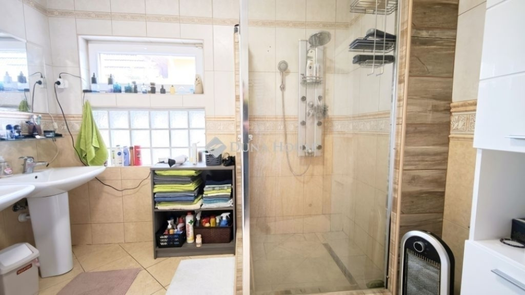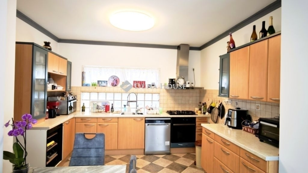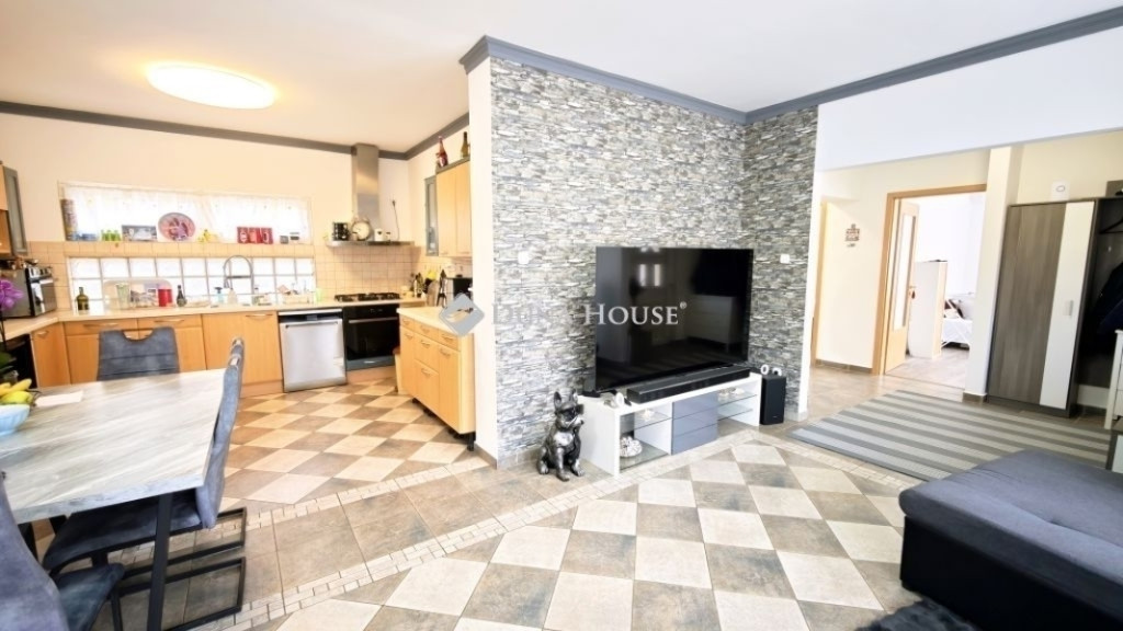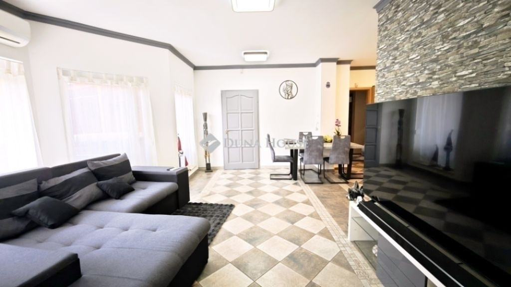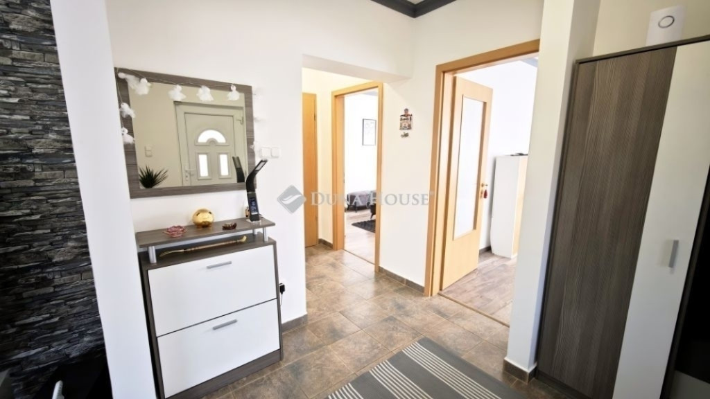 A belső terek kb. fél éve felújításon estek át, a nappali tágas és világos, igényes kőfal burkolattal.- garázs + fedett beálló- riasztó és kamerarendszer- külön mosókonyha - rendezett, gondozott kert.