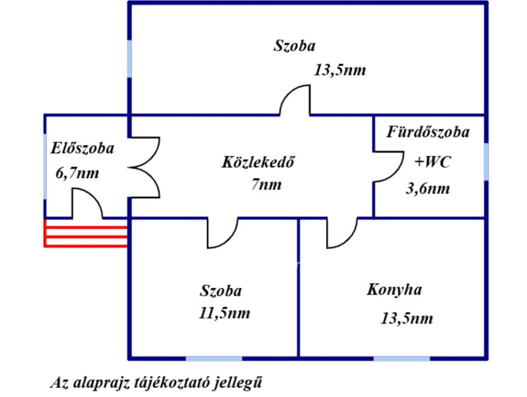 Elrendezés: A 2 szobás kialakítás különnyíló helyiségekkel praktikus életteret biztosít.