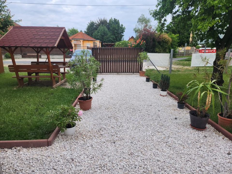 A 90 m2-es családi ház, melléképülettel, utcára nyíló garázzsal rendelkezik.
