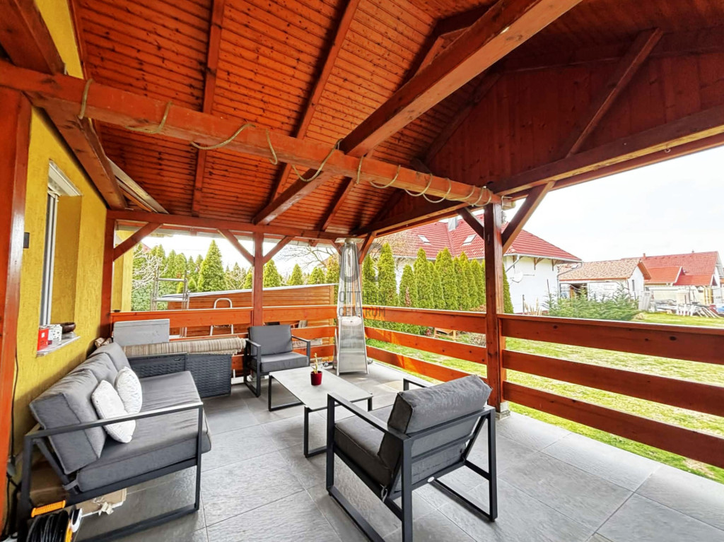 A ház 2 db fedett teraszkapcsolattal rendelkezik, a baráti összejövetelek , kerti bográcsozás, sütögetés remek színhelye lehet.