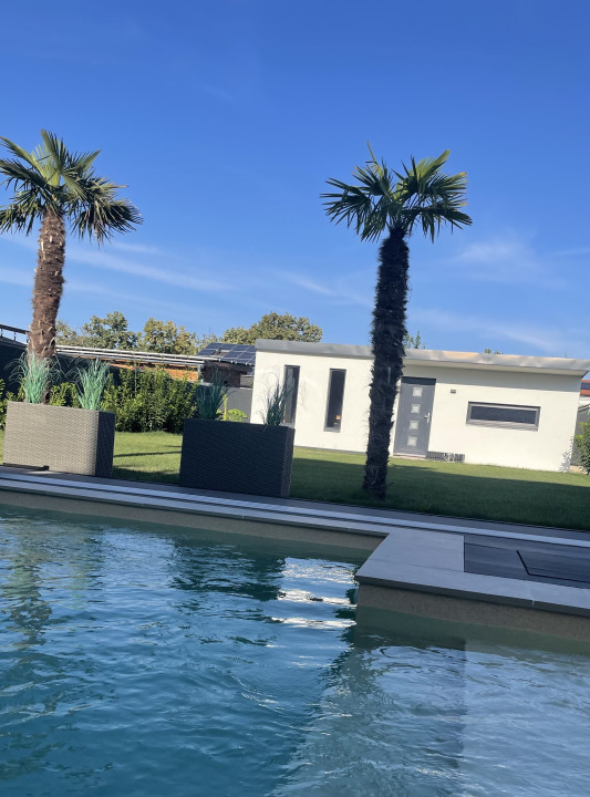 Az ingatlanhoz két fedett gépkocsi-beálló és egy tágas, hangulatos fedett terasz tartozik. A kert igazi ékköve egy prémium felszereltségű, 8×4 méteres úszómedence, amely minden igényt kielégít, legyen szó sportolásról, pihenésről vagy családi kikapcsolódásról.