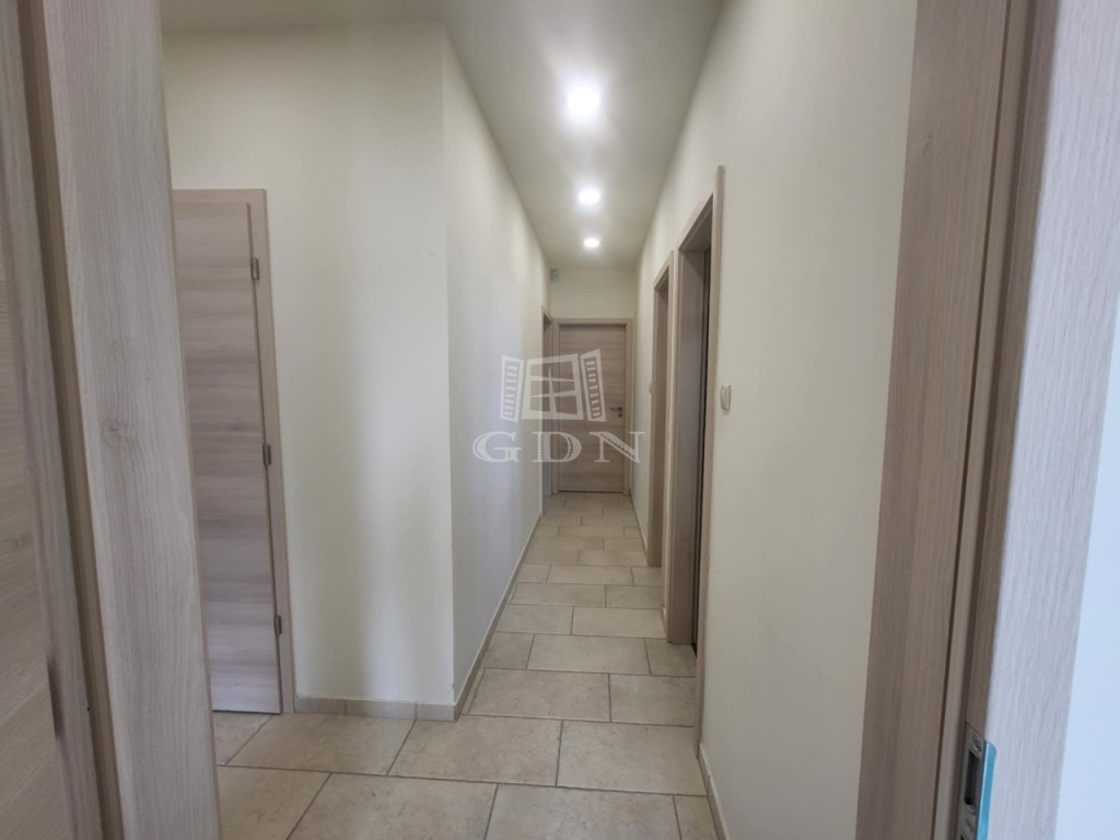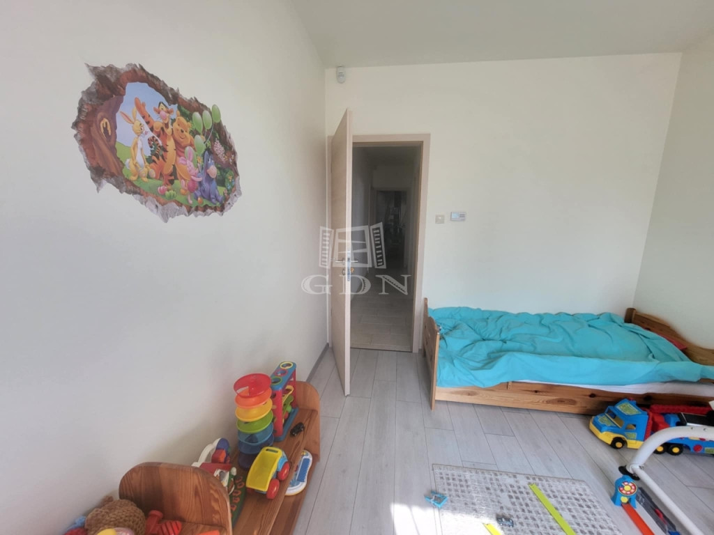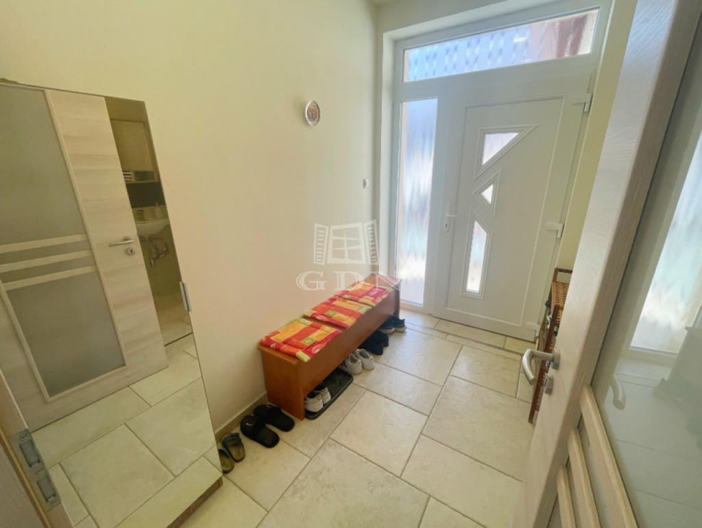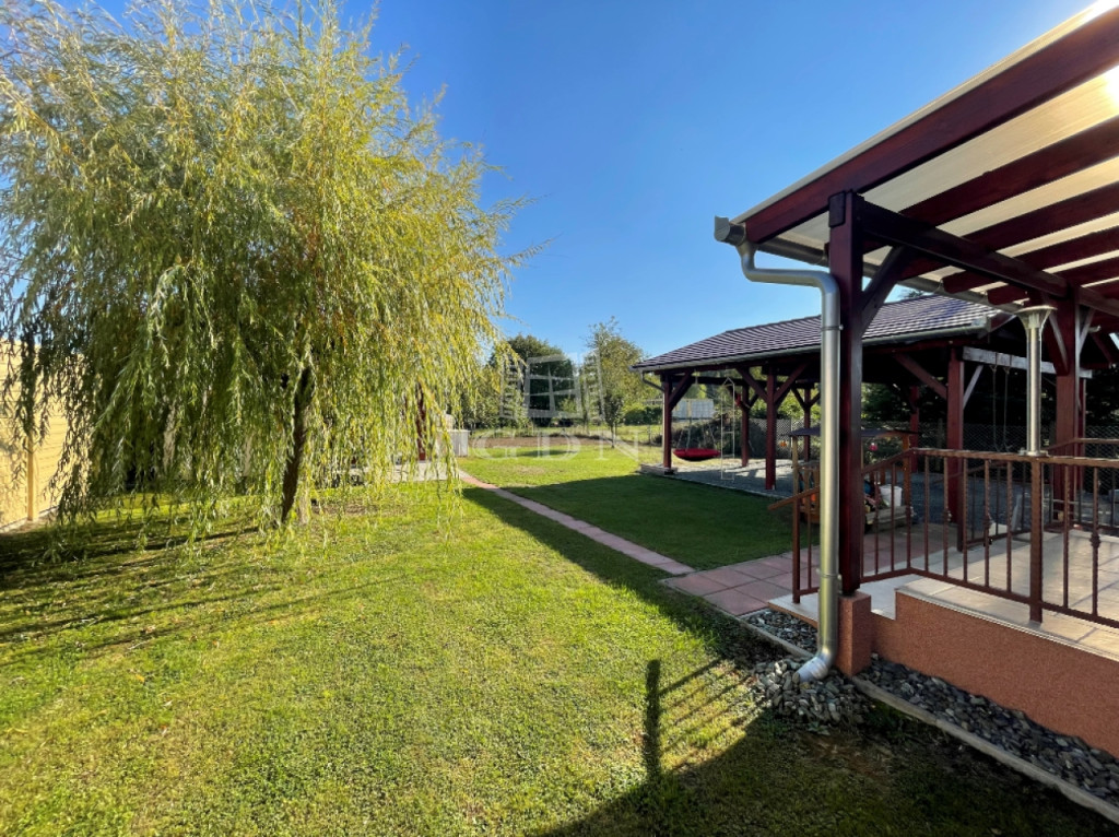 Szombathely herényi városrészén, magánútról megközelíthető 2017-ben, magas műszaki tartalommal épült családi ház várja új lakóit. Különlegessége, hogy akár a nagyiék is kötözhetnek. Külön nagy teraszról megközelíthető nappali-konyha, hálószoba, fürdő, wc elrendezésű, 38 m2-es kis ház külön megvásárolható. A hirdetésben szereplő ház 111 m2 nagyságú, három hálószobával rendelkezik. Kettő gardrób is kapcsolódik a szobákhoz. Nappalija tágas, nyugati tájolásának köszönhetően rendkívül világos. Konyhája kényelmét kamra szolgálja. Nagy méretű háztartási helyiségben található a lakás gépészete. A ház Silka falazó elemekből épült. Homlokzatára 2x12.5 cm multipor szigetelés, az aljzatba 3x5 cm lépésálló szigetelés, a födémre 2x20 cm szigetelés került. Energetikai szempontból kiváló az épület. Nyílászárói három rétegű üvegezéssel ellátott műanyag ablakok, alumínium redőnyökkel, szúnyoghálóval felszereltek. A tető Terran betoncseréppel fedett. A tetőre 15 kw teljesítményű napelemet szereltek, amely az ingatlan teljes villamos energia igényén kívül, a fűtést is ellátja. A helyiségek klímája külön termosztátokkal szabályozhatók. A hálószobákban falfűtés, a nappaliba fal -és padlófűtés, a fürdőkbe fal- és padlófűtésen kívül törölköző szárítós radiátorok kerültek. Az ingatlan dupla komfortos, tusolós és kádas fürdőszobáiban elszívók segítik a páramentesítést. A ház 36 m2-es fedett terasszal kapcsolódik a kerthez.