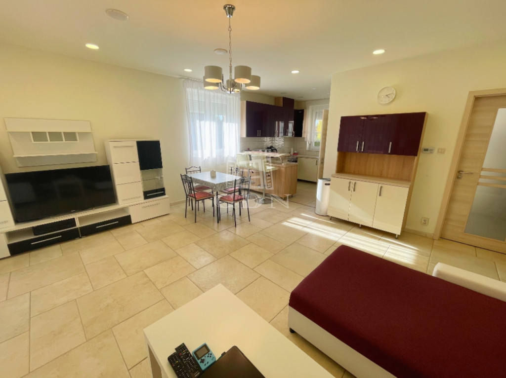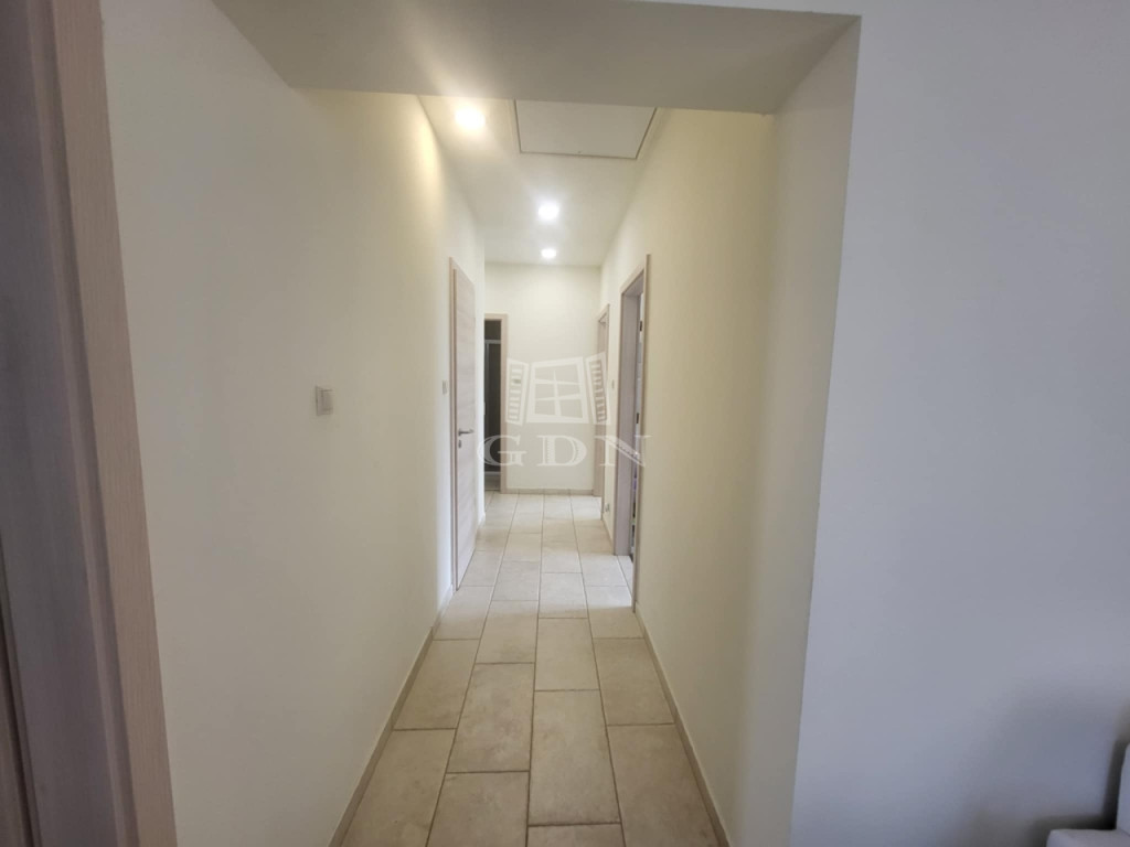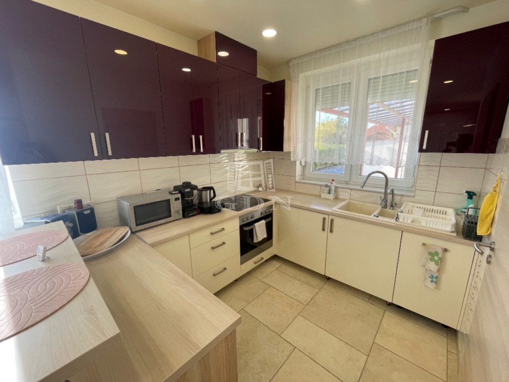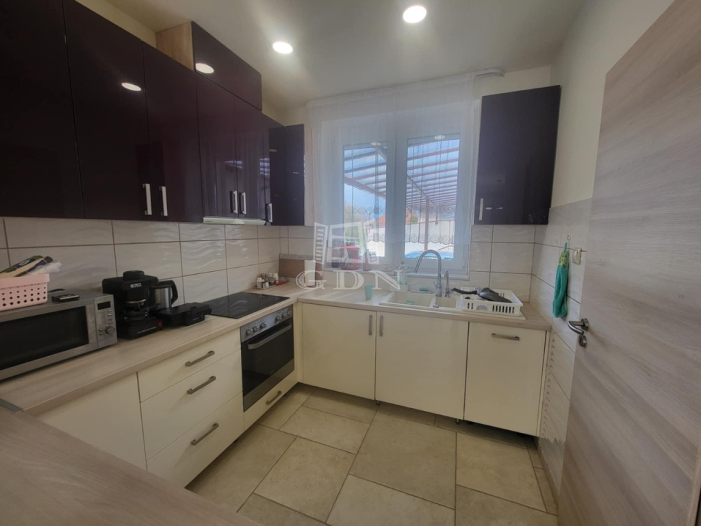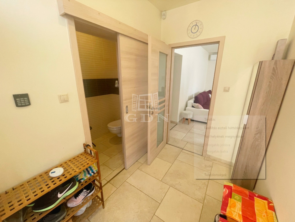 Szombathely herényi városrészén, magánútról megközelíthető 2017-ben, magas műszaki tartalommal épült családi ház várja új lakóit. Különlegessége, hogy akár a nagyiék is kötözhetnek. Külön nagy teraszról megközelíthető nappali-konyha, hálószoba, fürdő, wc elrendezésű, 38 m2-es kis ház külön megvásárolható. A hirdetésben szereplő ház 111 m2 nagyságú, három hálószobával rendelkezik. Kettő gardrób is kapcsolódik a szobákhoz. Nappalija tágas, nyugati tájolásának köszönhetően rendkívül világos. Konyhája kényelmét kamra szolgálja. Nagy méretű háztartási helyiségben található a lakás gépészete. A ház Silka falazó elemekből épült. Homlokzatára 2x12.5 cm multipor szigetelés, az aljzatba 3x5 cm lépésálló szigetelés, a födémre 2x20 cm szigetelés került. Energetikai szempontból kiváló az épület. Nyílászárói három rétegű üvegezéssel ellátott műanyag ablakok, alumínium redőnyökkel, szúnyoghálóval felszereltek. A tető Terran betoncseréppel fedett. A tetőre 15 kw teljesítményű napelemet szereltek, amely az ingatlan teljes villamos energia igényén kívül, a fűtést is ellátja. A helyiségek klímája külön termosztátokkal szabályozhatók. A hálószobákban falfűtés, a nappaliba fal -és padlófűtés, a fürdőkbe fal- és padlófűtésen kívül törölköző szárítós radiátorok kerültek. Az ingatlan dupla komfortos, tusolós és kádas fürdőszobáiban elszívók segítik a páramentesítést. A ház 36 m2-es fedett terasszal kapcsolódik a kerthez.