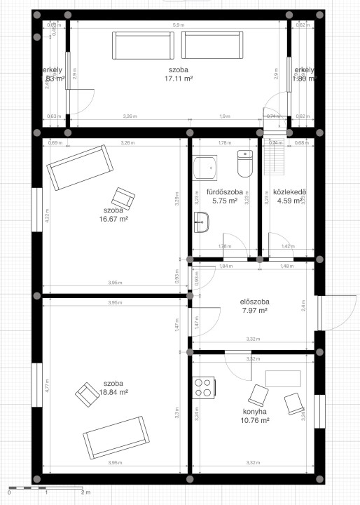 Nyílászáróit hő-, és hangszigetelt műanyag ablakokra cserélték, az erkélyek kivételével, a villanyrendszerét pedig rézvezetékekre cserélték.