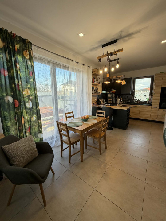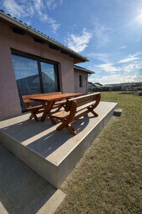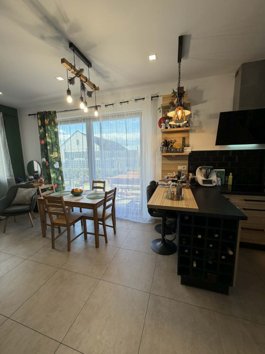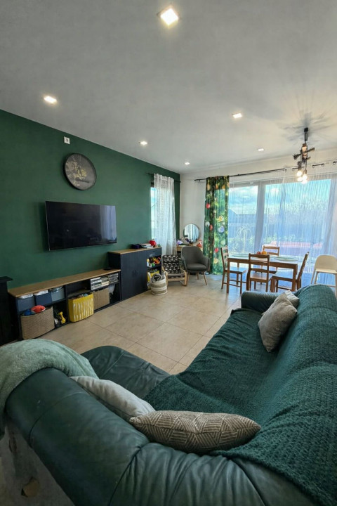Szombathely kedvelt kertvárosi részén, Oladon kínálunk megvételre egy 2020-ban épült, újszerű állapotú, 99 m2-es családi ház, amely egy 985 m2-es, önálló, teljesen körbekerített telken helyezkedik el. A telek mérete és az, hogy a szomszédos ingatlanok kellő távolságra találhatók, a környéken kifejezetten ritkának számít, így a zsúfoltság egyáltalán nem jellemző, nyugodt és tágas életteret biztosít. Az ingatlan elhelyezkedése ideális választás mindazok számára, akik csendes környezetben szeretnének élni, mégis közel maradva a város nyújtotta lehetőségekhez. A ház belső tereit a tudatos tervezés és az élhetőség jellemzi. A napfényes, nyugati tájolású nappali a családi élet központja, ahonnan közvetlenül kiléphetünk a 13 m2-es teraszra, amely kellemes helyszíne lehet baráti összejöveteleknek vagy egy nyugodt esti pihenésnek. A nappali mellett három külön nyíló szoba, egy dolgozószoba, gardrób és kamra szolgálja a mindennapok kényelmét, így minden családtagnak jut saját tér, miközben a közösségi helyiségek megőrzik otthonos hangulatukat. A műszaki tartalom a modern igényekhez igazodik. A fa nyílászárókhoz mindenhol motoros redőny és szúnyogháló tartozik, a vízlágyító berendezés pedig hozzájárul a háztartási gépek és a vízrendszer hosszú élettartamához. A fűtést gázcirkó kazán biztosítja, részben padlófűtéssel, a szobákban radiátoros hőleadással, míg az 5,2 kW-os hűtő-fűtő klíma egész évben kellemes hőmérsékletet teremt. Az ingatlan egyik kiemelkedő értéke a 2025. nyarán telepített 5,79 kW-os napelemes rendszer, amelyhez 9,2 kWh kapacitású energiatároló is kapcsolódik. A mintegy 6 millió forintos beruházás hosszú távon jelentős rezsimegtakarítást és nagyobb energiafüggetlenséget biztosít az új tulajdonos számára. A fürdőszobák kialakítása is a kényelmet szolgálja az egyik zuhanyzóval felszerelt, míg a nagyobb fürdőben egy prémium minőségű, hidromasszázs funkcióval ellátott Wellis kád gondoskodik a mindennapi feltöltődésről. A házba riasztó előkészítés megtörtént. A gondosan karbantartott kertet gyönyörű babérsor öleli körbe ahol több gyümölcsfa is telepítésre került. A telek hátsó része még elég nagy (kb.500m2-es) egy esetleges házbővítésre, garázsépítésre esetleg medence telepítésre ( a villanyvezeték a telek határáig el van vezetve). Az ereszcsatornákból összegyűjtött esővíz IBC tartályokba kerül, így a kert és a magaságyások öntözése gazdaságosan megoldható egész nyáron. Az udvaron 2025-ben két autó számára fedett beállót alakítottak ki, emellett egy praktikus kerti kis ház is helyet kapott. Ez az ingatlan ideális választás egy család számára, akik nyugodt, biztonságos környezetben, modern és energiatakarékos otthonban képzelik el a jövőjüket.