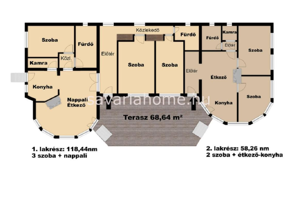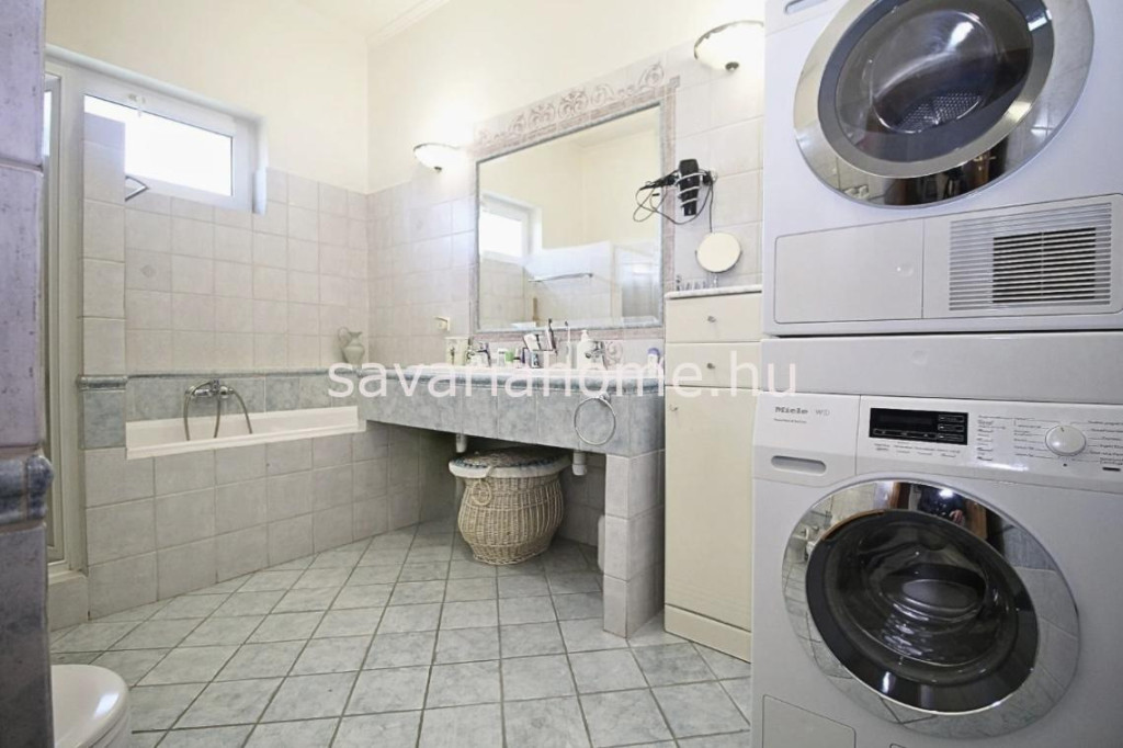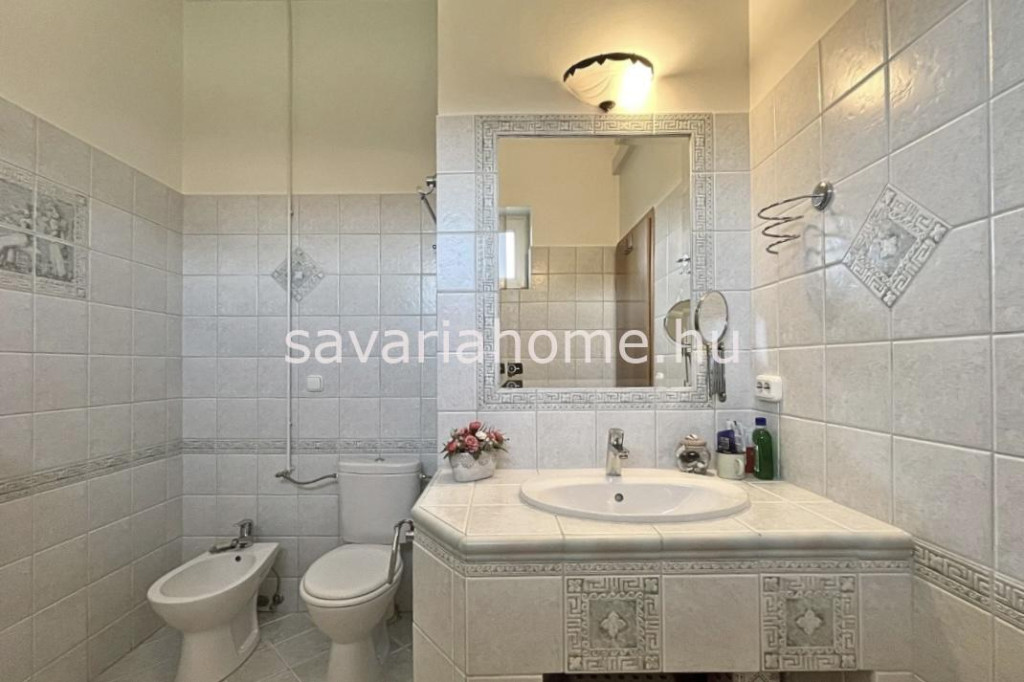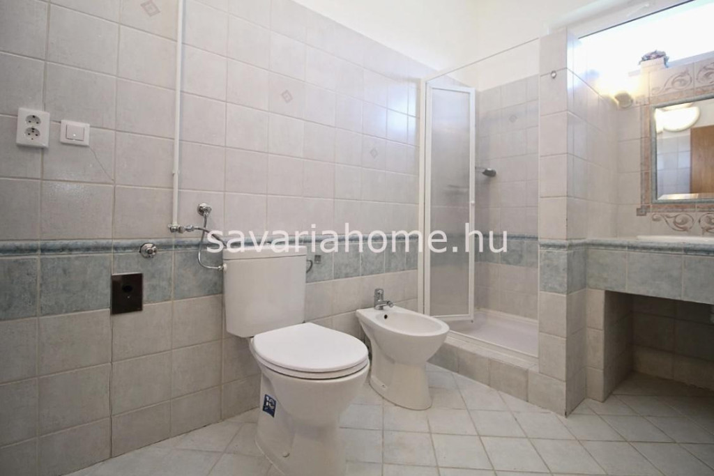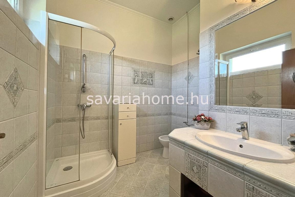 Az 1-es lakrész 118nm alapterületű, 3 hálószoba, 32nm-es nappali, konyha, kamra, két fürdőszoba, plusz egy Wc helyiségekből áll. Sok- sok beépített szerkény segíti a tárolást, melyek a vételárban kompletten beleszámítanak. A nappaliban található egy csodás cserépkályha, mely a közelmúltban lett újrarakva, így azzal mostanában teendő nincsen. Az ingatlan komplex fűtését gázkazán biztosítja, padló és falfűtéssel, de ebben a lakrészben két klíma is található, mely télen fűt, nyáron pedig a kellemes hűvös időt biztosítja. A ház rezsije nagyon kedvező, havi 10 ezer F-tos gázszámával kifűthető a két lakrész. A villany számlát a tetőn található 10kW-os napelem rendszer teszi kedvezővé, de a melegvíz ellátáshoz is hozzájárul a plusz napkollektor.