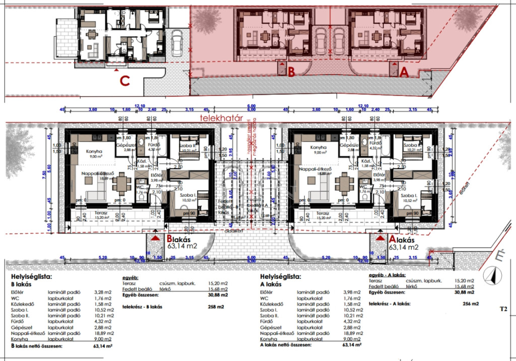 A Wienerberger Porotherm téglából épülő házak magas műszaki tartalommal épülnek. Tetőszerkezete C22 I. osztályú , rovar, gomba és lángmentesítővel kezelt faanyaggal kerül kivitelezésre. Fedése Terran vagy Bramac cseréppel történik, az összes rendszer tartozékkal, előírások szerint helyenként hófogóval. Bádogos szerkezetek, a külső vízelvezetések ereszcsatornái, a lefolyócsövei és az egyéb bádogos szerkezetek 0.6 mm vastag acéllemezből készülnek. Homlokzati falfelületek 15 cm vastag EPS hőszigetelő rendszert, a lábazatok 10 cm vastag XPS lábazati hőszigetelő rendszert kapnak. A padozatokba 10 cm vastag teherbíró EPS hab hőszigetelés kerül. A födém hőszigetelése 25 cm vastag ásványgyapot szigetelőanyaggal történik. Külső nyílászárói műanyag, három rétegű üvegezéssel szerelt, fokozottan hang-és hőszigeteltek. Fűtése, a háztartási helyiségben elhelyezett 10Kw teljesítményű Gree Versati 3 hőszivattyúval történik, padlófűtéses hőleadással szabályozható termosztáttal. A hőszivattyú biztosítja a melegvizet is, egy 200 literes hőtárolós víztartállyal. Nappaliában 3.5 Kw teljesítményű hűtő-fűtő klíma kerül.Az ingatlanban riasztó, kaputelefon, előkészítés történik. Beltéri ajtók, hideg-meleg burkolatok, szaniterek, csaptelepek választhatók.. Ha bővebb tájékoztatást szeretne, kérem keressen. Vegye igénybe irodánk szolgáltatásait. Hitelügyintézésben is segítünk. ...TOVÁBBI, TÖBBEZRES INGATLAN KÍNÁLAT: - GDN azonosító: 392753
