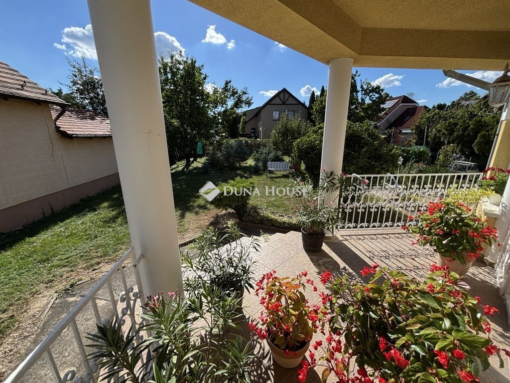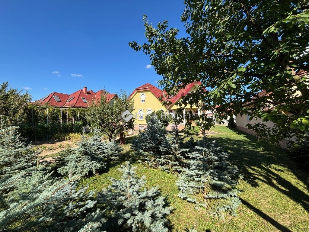 Az ingatlan egy szépen gondozott, 819 m2-es parkosított telken fekszik. Kiváló tájolású a ház, reggeltől kora estig issza a napfényt. A telek nagyobb részét dísznövények és örökzöldek tarkítják, de hátul megbújik egy konyhakert és egy tároló faház is.
