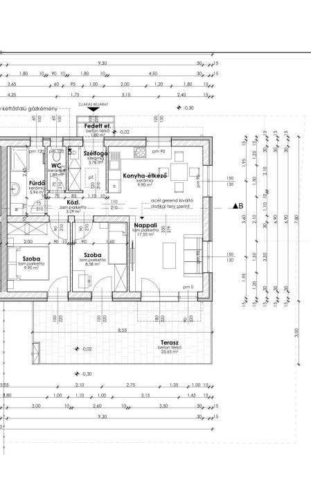 A 61 m2-es lakótérrel rendelkező ingatlan belső, udvari elhelyezkedésű és tartozik hozzá egy 25 m2-es terasz, illetve egy 433 m2-es saját, kerítéssel körbezárt kert. A terek rendkívül kedvezően kerültek kialakítása: tágas nappali-étkező-konyha központi elhelyezéssel, valamint a 2 hálószoba, fürdőszoba, külön illemhely, előszoba és a nappaliból illetve egyik hálóból is nyíló terasz kompakt otthont alkot. A ház saját 30 m-es térkövezett, megvilágított autóbeállóval rendelkezik. A ház fa gerendás födémmel készült 20 cm hőszigeteléssel, álmennyezettel, a válaszfalak 10 cm porotherm válaszfaltéglából. Világítás helyiségenként több kiállással, lámpatesttel, hideg/meleg fény variációival, hangulatvilágítással, kültéri világítással, mindez okos-rendszerrel szabályozható. Padlófűtés minden helyiségben hőszivattyúval történik, a meleg víz ellátás Vaillant villanybojlerrel, klíma. A napelem-előkészítés biztosított. A fürdőszobában üvegfallal elválasztott zuhanyzó és térben álló fürdőkád is található. Az ingatlanban prémium minőségű hidegburkolat és valódi fapadló, valódi kő külső párkány került beépítésre. A házhoz tartozik kihasználható padlás is melyre a feljárás az előszobából biztosított.
