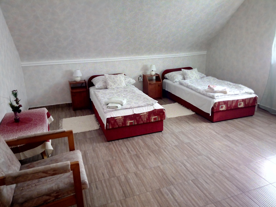 Itt a 116 nm-en étkező, nappali, mosókonyha és 5 apartman van kialakítva , mindegyik saját fürdőszobával rendelkezik. Minden szoba klímatizált és az új napelemnek köszönhetően a villanyszámla télen is 0 Ft.