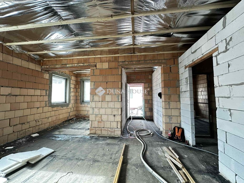 NE HAGYJA KI EZT KIVÁLÓ LEHETŐSÉGET!ÚJÉPÍTÉSŰ, ENERGIAHATÉKONY OTTHON SAJÁT KERTTEL !Elérhető közelségben a nyugalom és a modern kényelem: most még választható burkolatokkal és ajtókkal kínáljuk ezt a nettó 80,03 m²-es, 3 hálószobás családi házat saját kerttel és terasszal!Az ingatlan főbb jellemzői: Előszoba (3,60 m²), tágas nappali-étkező (23,80 m²) Modern konyha (7,61 m²) közvetlen teraszkapcsolattal 3 külön nyíló hálószoba (13,03 m², 12,24 m², 8,52 m²) Fürdőszoba + külön WC, gépészeti helyiség Előterasz (5,35 m²) és hátsó terasz, saját kerttel 1 db udvari murvázott beállóMűszaki tartalom: Porotherm 30-as tégla főfalak, 15 cm homlokzati szigeteléssel Ytong válaszfalak, fa födém 20 cm szigeteléssel Terrán betoncserép tető, barna színben Műanyag nyílászárók, 2 rétegű üvegezéssel Padlófűtés előkészítés, hűtő-fűtő klíma, kandallóhoz kémény beépítve Meleg víz ellátás: villanybojlerrel Közművek: víz, villany, csatorna, gáz önálló mérőórákkalExtra lehetőség: Választható belső ajtók (50.000 Ft/db) Burkolatok és szaniterek a műszaki tartalom alapján szabadon választhatók, az ár tartalmazza: 2.500 Ft/m2 árig a lamináltpadló anyagköltségét, 5.000 Ft/m2 árig a fürdőszoba hidegburkolatának, gápház és wc aljzat burkolatának anyagköltségét..Ez az otthon tökéletes választás mindazoknak, akik új építésű, korszerű és kényelmes házban képzelik el a jövőjüket.A hirdetésben szereplő adatok, információk, képek, alaprajzok stb... tájékoztató jellegűek! Irodánk az esetleges elírásokért felelősséget nem tud vállalni!A hirdetésben szereplő FIX 3%-os lakáshitel részét képező támogatásokat Magyarország Kormánya nyújtja.Ne maradj le költözz be akár már szeptembertől!