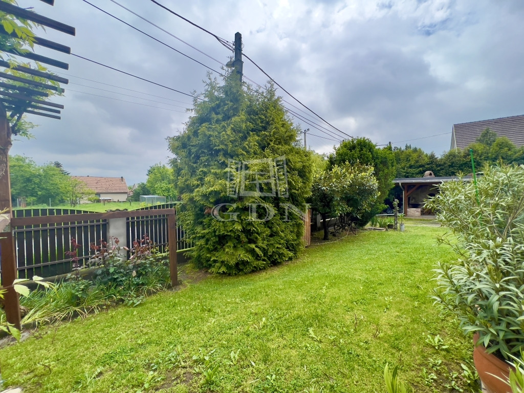 A kert gondozott, fedett kiülővel és kerti sütőhellyel, ideális helyszín a nyári estékhez. A házhoz tartozik terasz, garázs, valamint több autó számára parkolóhely az udvarban.