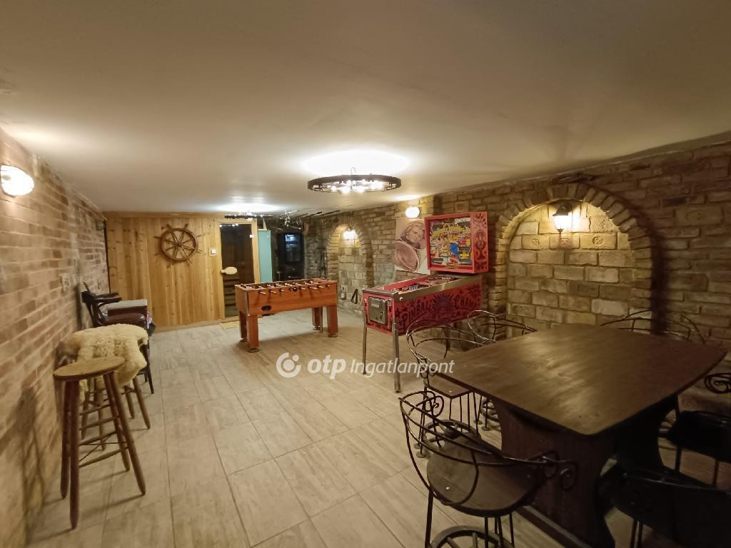 Az emeleti szinten három hálószoba található, amelyek közül kettőből kiléphetünk az erkélyre, ahonnan csodálhatjuk a Duna-part festői szépségét. Ezen a szinten kapott helyet egy tágas gardróbszoba, egy mosókonyha, valamint egy fürdőszoba WC-vel. A pincében egy szórakoztató helyiség várja a családot és vendégeket, amely csocsóval, flipperrel és egyéb szórakozási lehetőségekkel van felszerelve, továbbá itt található egy szauna is, amely teljes kikapcsolódást biztosít.