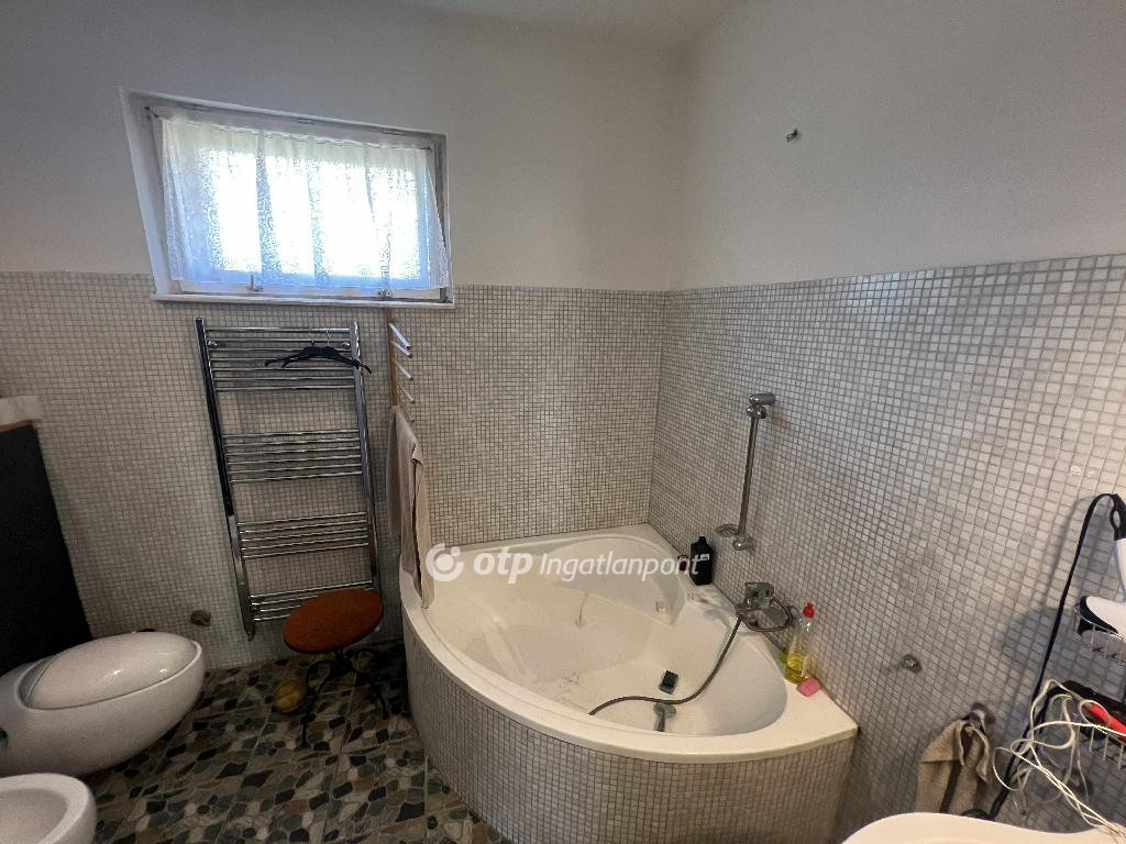 A fürdőszoba modern felszereltségű: sarokkád, bidé, mosdószekrény, WC, valamint zuhanyzó-előkészítés található benne. A fűtés kombi gázcirkóval megoldott, radiátoros és padlófűtéses hőleadással, a fürdőben törölközőszárító radiátor biztosítja a kényelmet. A házban LED világítás és kamerarendszer is kiépítésre került.