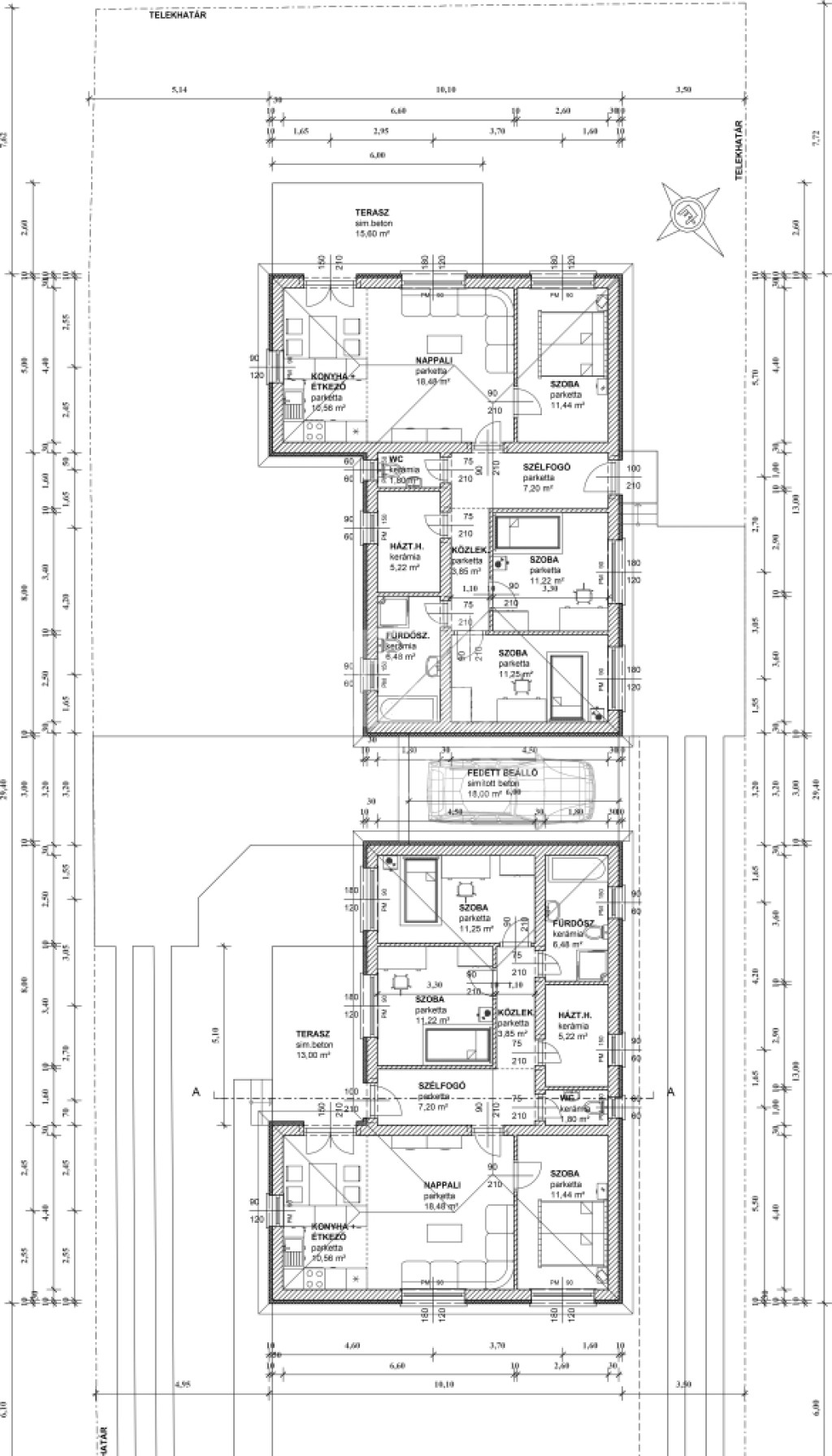 A hátsó ikerházfélhez 460 m²-es önálló telekrész tartozik.