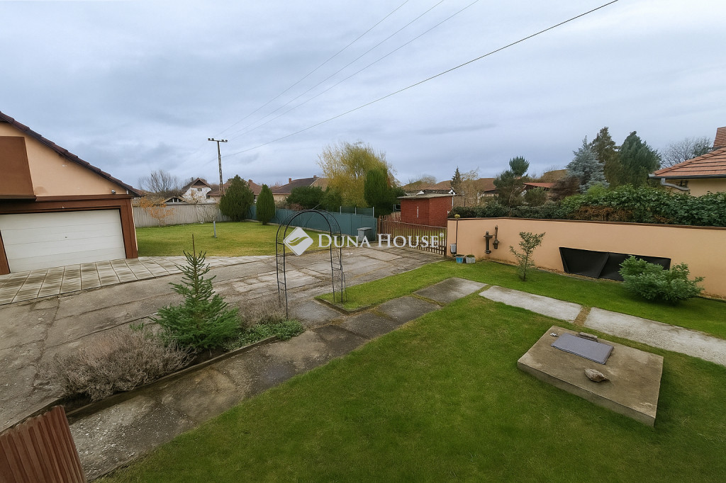 Az udvarban 2 beállásos elektromosan nyíló ajtóval ellátott garázs, öntözőrendszer, riasztó és kamerarendszer vigyázza a házat.