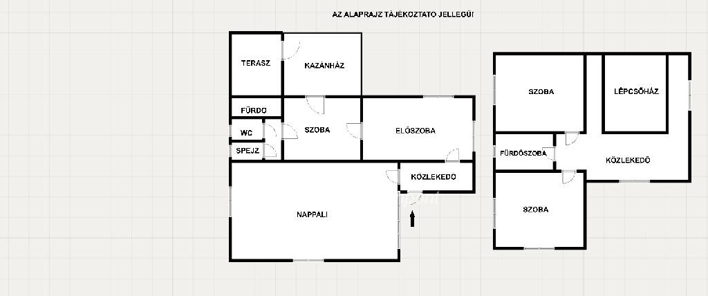 Az elrendezés lehetővé teszi, hogy az ingatlan akár két különálló lakrészre is osztható legyen.