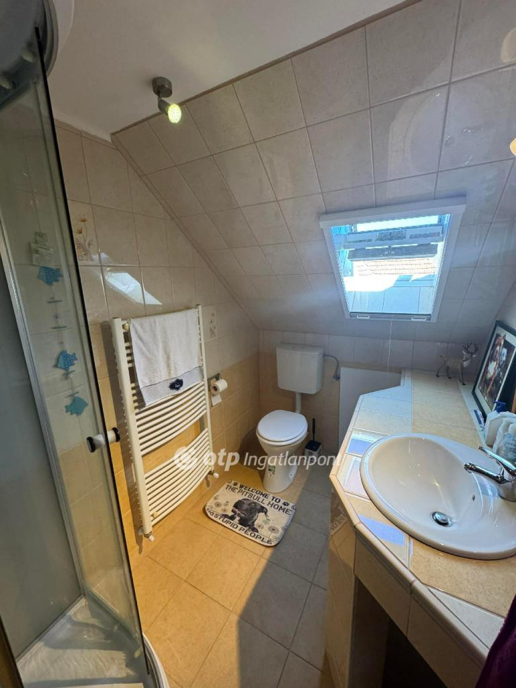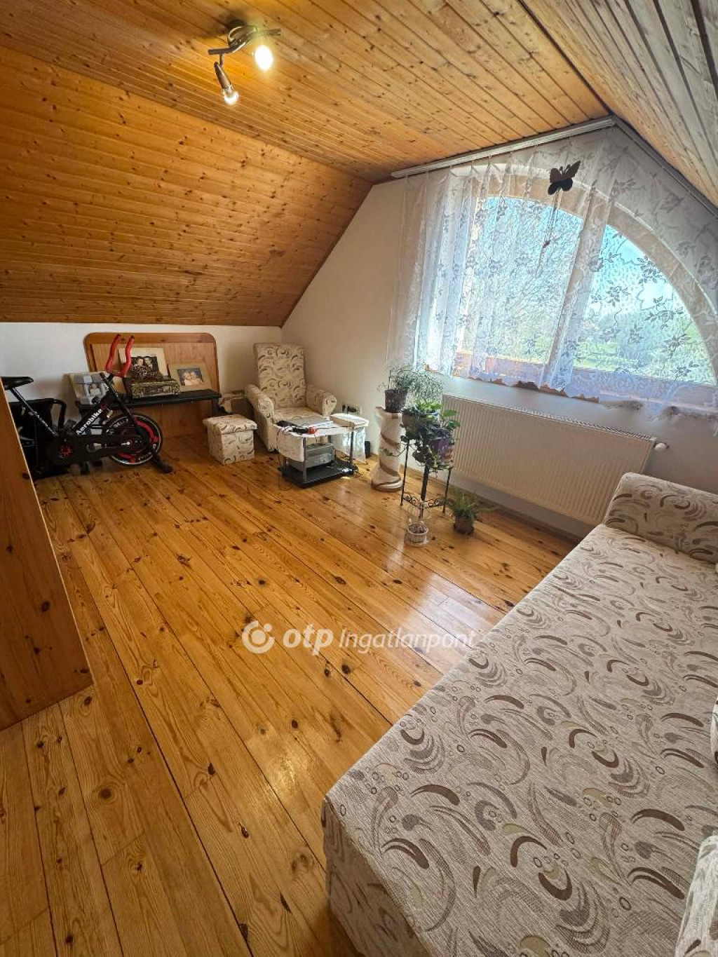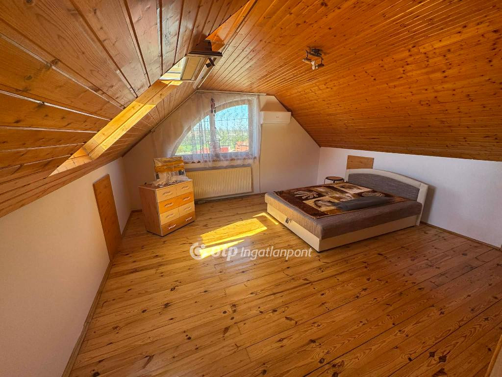 Az emeleti szinten további két külön nyíló szoba, egy közlekedő, valamint egy fürdőszoba WC-vel került kialakításra.