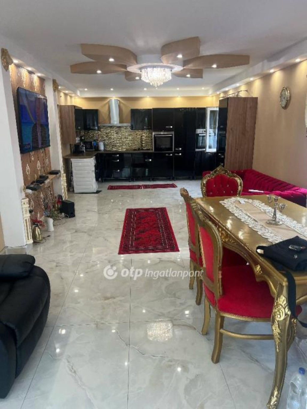 Az ingatlanban egy előszoba, hatalmas amerikai konyhás nappali étkezővel, három szoba, fürdő/WC, közlekedő és egy mosókonyha található.