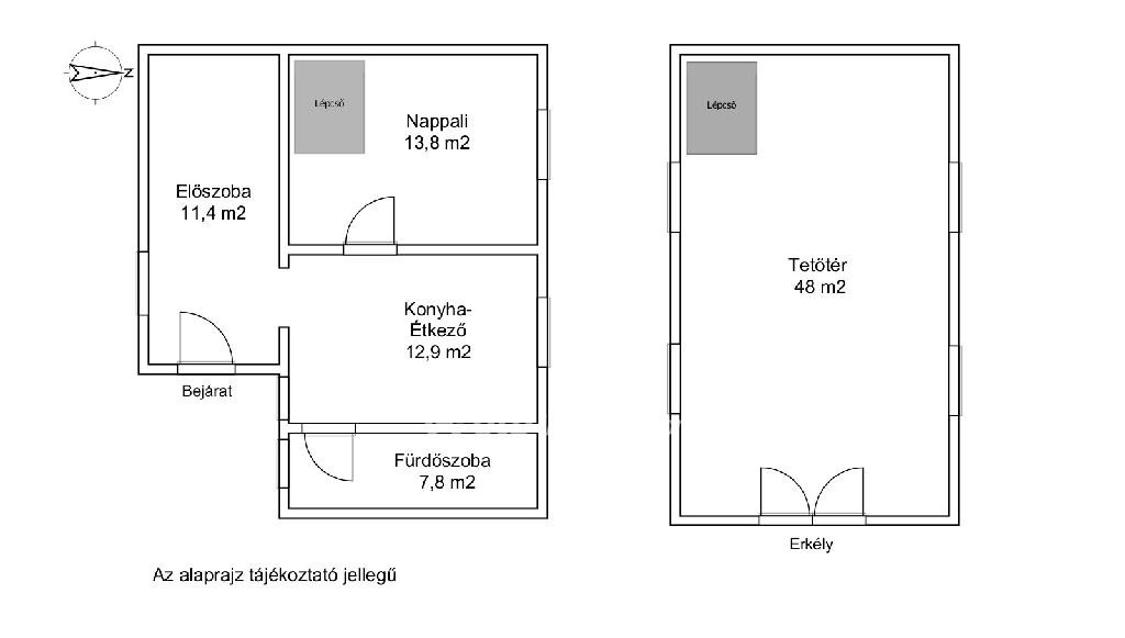 A földszinten előszoba, konyha-étkező, nappali és fürdőszoba található, míg a tetőtérben egy tágas, fa lambériás, világos helyiség várja új funkcióját. Könnyedén átalakítható több szobává, akár saját fürdőszobával, és már most rendelkezik egy kényelmes erkéllyel.