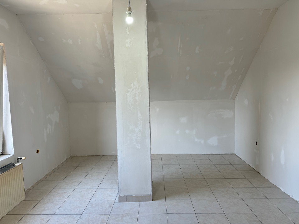 Emeleti nagyszoba frissen glettelve, festésre előkészítve.