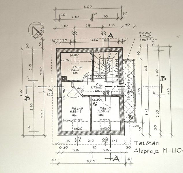 Tetőtér (25.26m2): közlekedő (7.75m2), fürdőszoba (5.04m2), 2 szoba (6.88m2, 5.59m2).