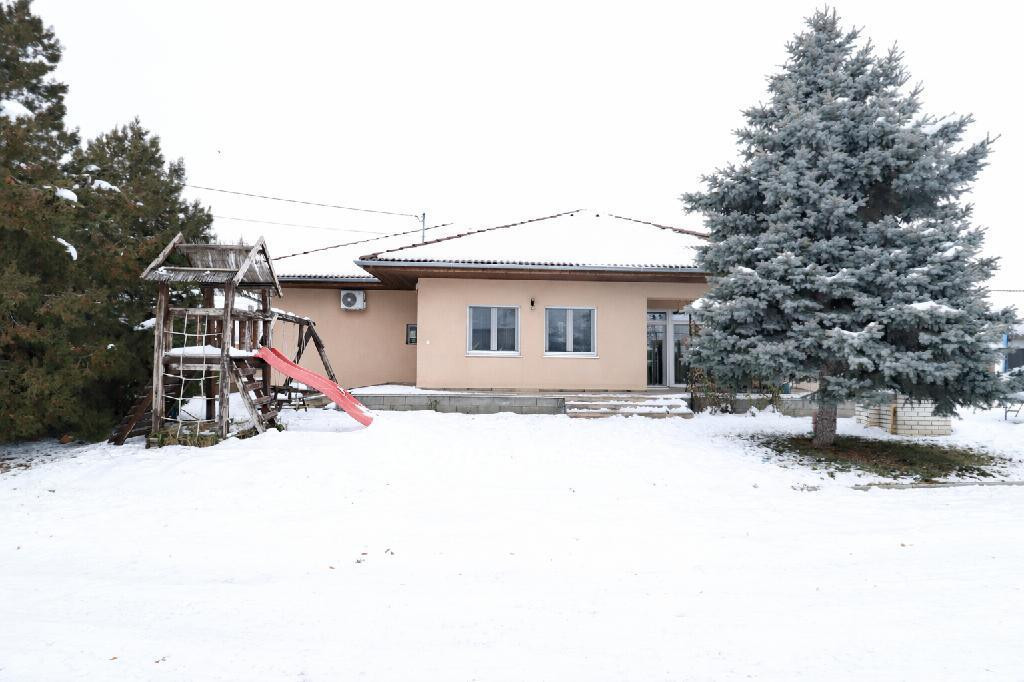Tass csendes, nyugodt, aszfaltozott, forgalomtól mentes utcájában eladó egy újszerű, 2019-ben prémium minőségű anyagokból épült, duplakomfortos családi ház. Ideális választás mindazok számára, akik modern, kényelmes és sokoldalúan használható otthont keresnek. A 2161 m2 nagyságú, minden oldalról kerítéssel védett udvar biztonságos és tágas életteret kínál, míg a téglából épült ingatlan 12 cm vastag grafitos hőszigeteléssel és korszerű műanyag nyílászárókkal energiahatékony otthont biztosít. Az ingatlan összközműves, a vezetékes víz, csatorna, gáz és áram mind rendelkezésre áll, a fűtést és a melegvíz-ellátást kondenzációs kazán biztosítja, a kamra kivételével valamennyi helyiségben padlófűtéssel. A 150 m2 nagyságú fűtött alapterületen nappali, étkező+konyhán túl négy szoba, két fürdőszoba, külön WC és előszoba szolgálja a család kényelmét. Az élhető, tágas és világos terekhez ízléses színvilág társul. A ház déli oldalán végighúzódó, összesen 50 m2 nagyságú fedett terasz kiváló helyszínt teremt családi és baráti összejövetelekhez. Az épület mellett egy szintén téglából készült, 100 m2-es, akár öt autó befogadására alkalmas garázs található. Az udvar 400m2-es része betonozott, teherautók és kamionok tárolására is alkalmas, így az ingatlan telephelyként is remek lehetőséget kínál. A ház rövid határidővel költözhető, igény szerint akár bútorozottan is megvásárolható. Falusi CSOK-ra, CSOK Pluszra és az Otthon Start Program keretében államilag támogatott hitelre is alkalmas, a vásárláshoz igény esetén díjmentes hitelügyintézést biztosítunk. Amennyiben az ingatlan felkeltette érdeklődését, várom hívását bizalommal, és örömmel mutatom meg személyesen is.