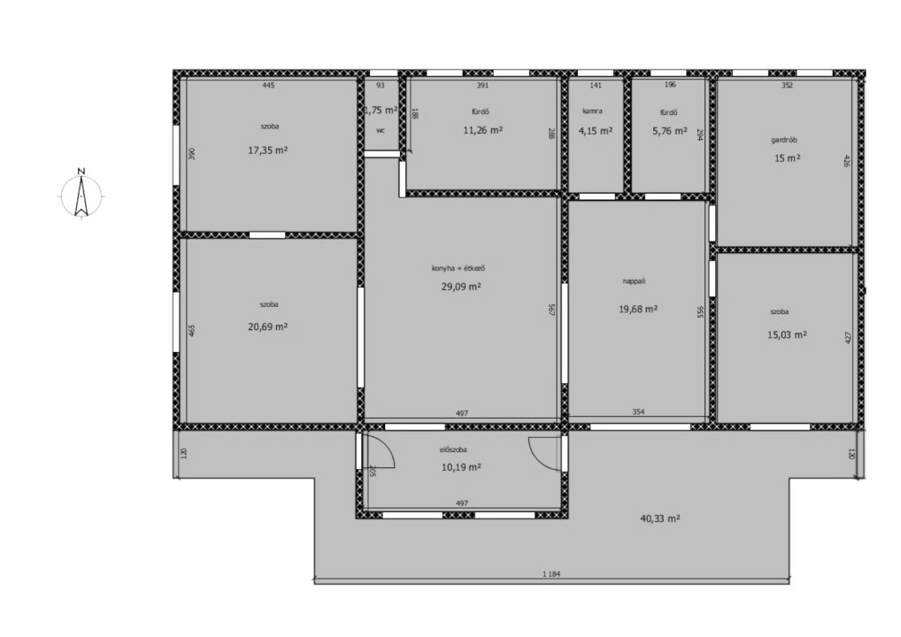 A pihenés és kikapcsolódás tökéletes helyszíne a 40 m²-es terasz, amelynek egy része fedett, így bármely évszakban élvezhető.