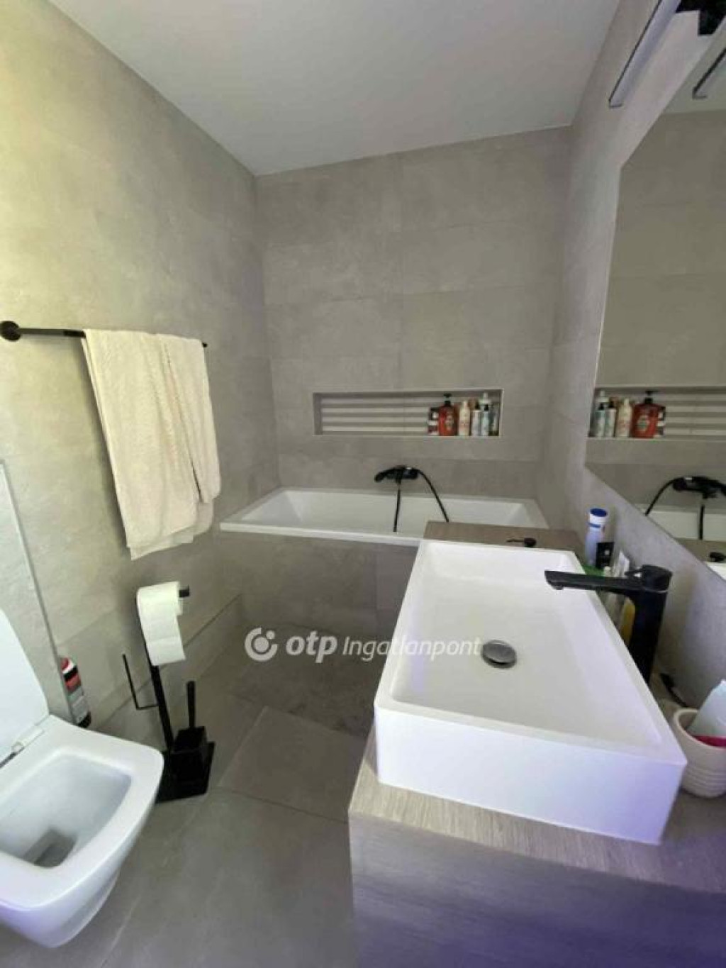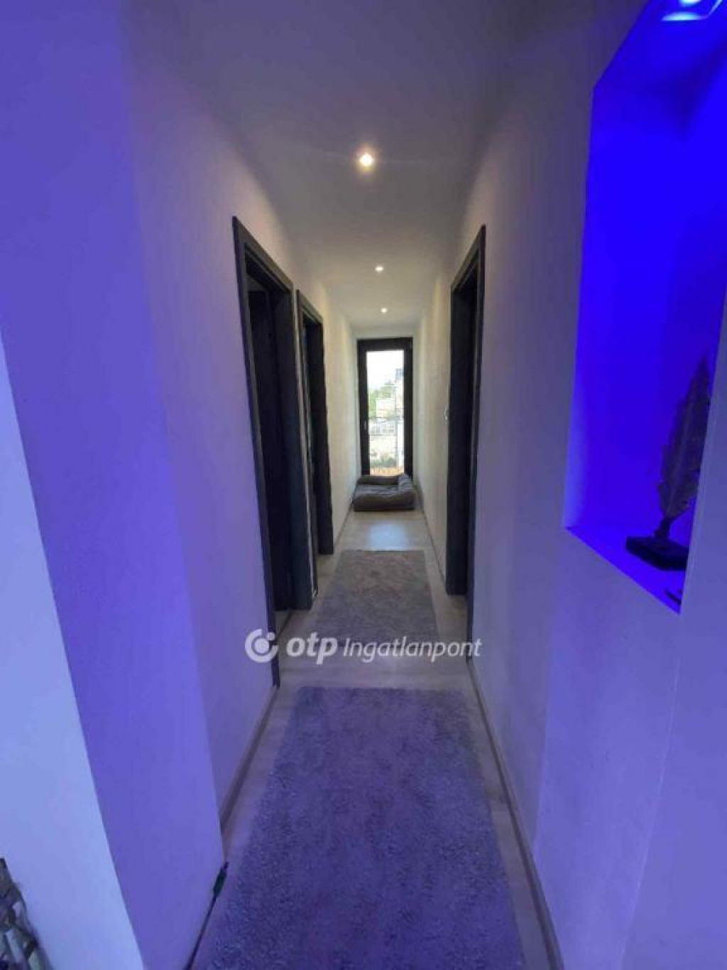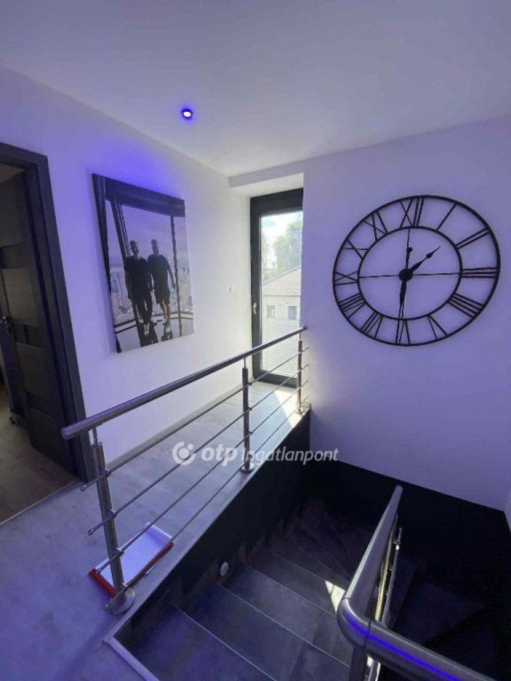 A lenti és az emeleti lakóteret egy gyönyörű, világos lépcsőház köti össze. A ház 4 szobája és a nappali járólap burkolattal rendelkezik, a többi helyiség laminált parketta burkolatú. A fürdőszoba kényelmes, nagyméretű zuhanyzó került beépítésre. Gáz cirkó kazán szolgáltatja a melegvíz ellátását és a fűtését, padlófűtéses hőleadással, erre a nappali díszeként is pompázó és a téli estéket hangulatossá varázsló kiválóan működő kandalló is rásegít valamint 4 db hűtő-fűtő klíma.