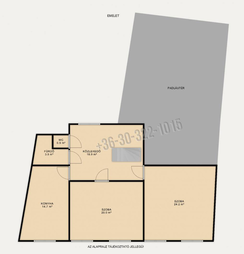 HÁROM, egyenként közel 25 M²-ES, tágas és világos SZOBA biztosítja a kényelmes lakhatást. Ezen a szinten található továbbá egy különálló KONYHA, ÉTKEZŐ, KAMRA egy FÜRDŐSZOBA, valamint egy központi LÉPCSŐFELJÁRÓ, amely a tetőtérbe vezet.
