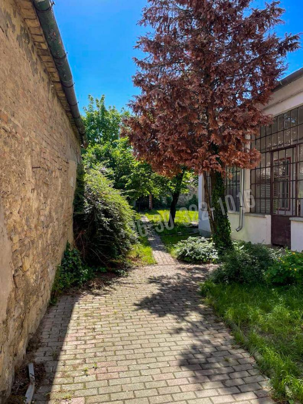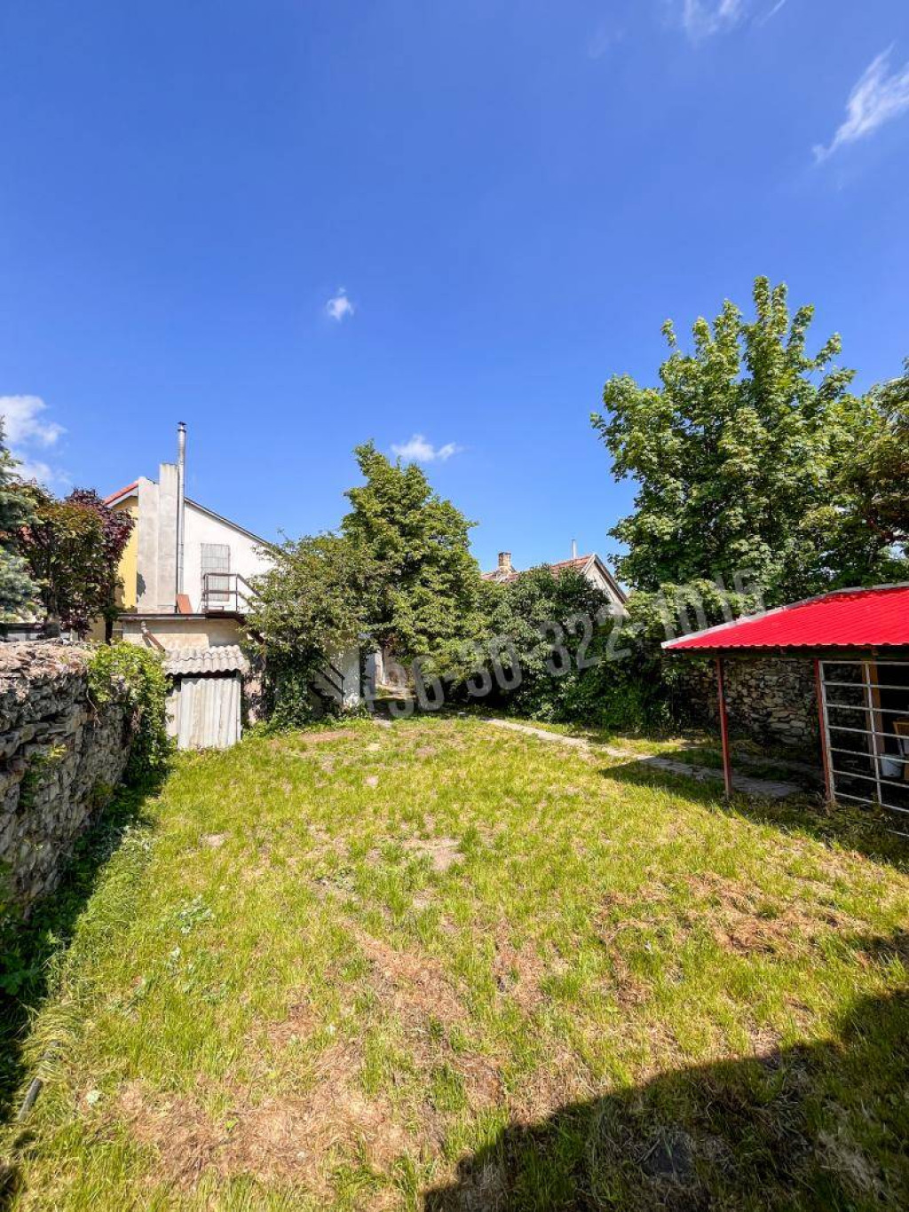 A hátsó kerti rész egy keskeny kapun keresztül közelíthető meg, és egy teljesen elszeparált, parkosított, füves területet kínál. Ez a kert ideális lehet pihenőkertnek, játszótérnek, vagy akár egy modern teraszos kerti kiülőnek is – a leendő tulajdonos kreativitására van bízva.