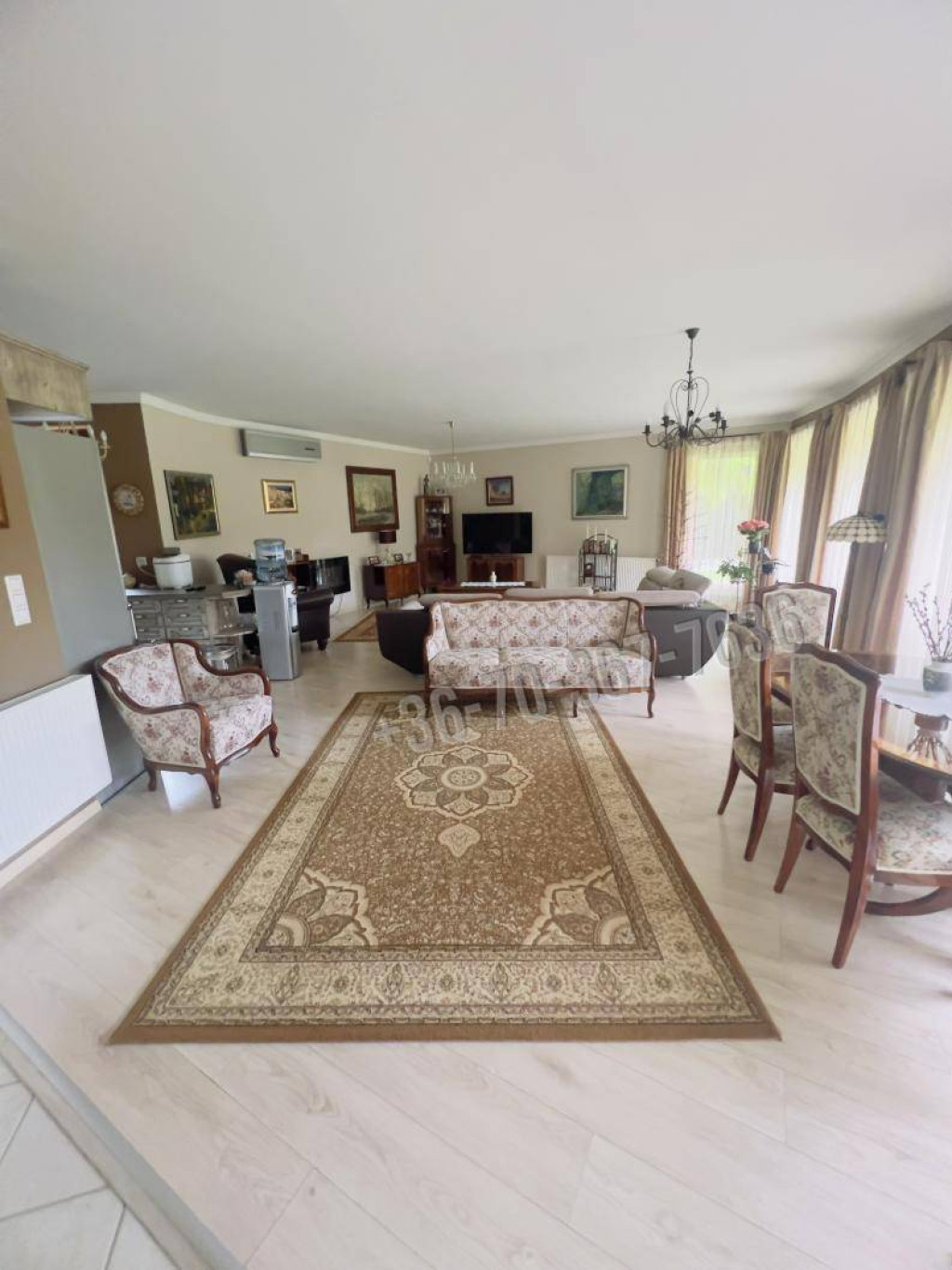 Ez a praktikus kialakítású, 200 m²-es, nappali + 4 hálószobás, duplagarázsos családi ház, egy 1000 m²-es, gyönyörűen parkosított telken helyezkedik el. Az ingatlan külső és belső megjelenésében is az igényesség, időtállóság és kifinomult elegancia ötvöződik.
