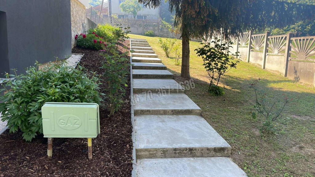 A 2500 nm-es, parkosított kert tökéletes helyszín a kikapcsolódásra, családi összejövetelekre, grillezésre, vagy akár saját veteményes és díszkert kialakítására. A telken négy különböző méretű, felújított tároló is rendelkezésre áll.