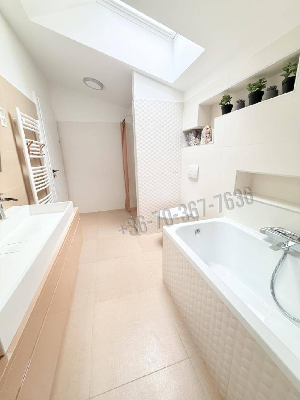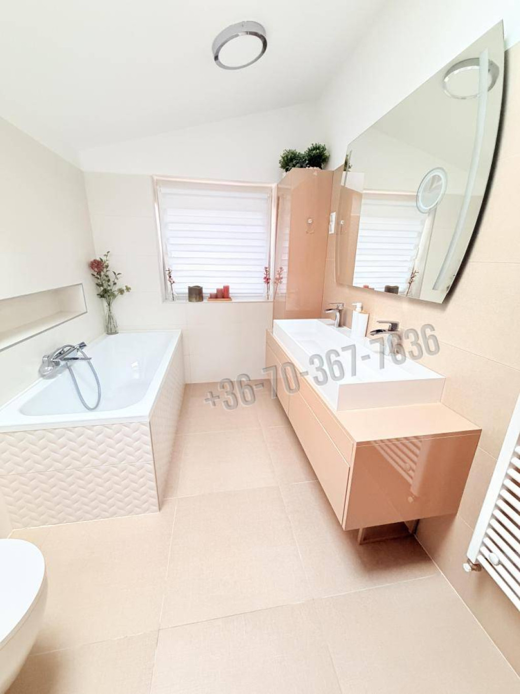 A ház minden részlete minőségről árulkodik: spanyol és olasz burkolatok, egyedi konyhabútor, két beépített sütő (az egyik egy mikróval kombinált ,a másik egy gőzfunkciós sütő), dizájntapéták, tölgyfa bútorok, és minden helyiségben klíma.