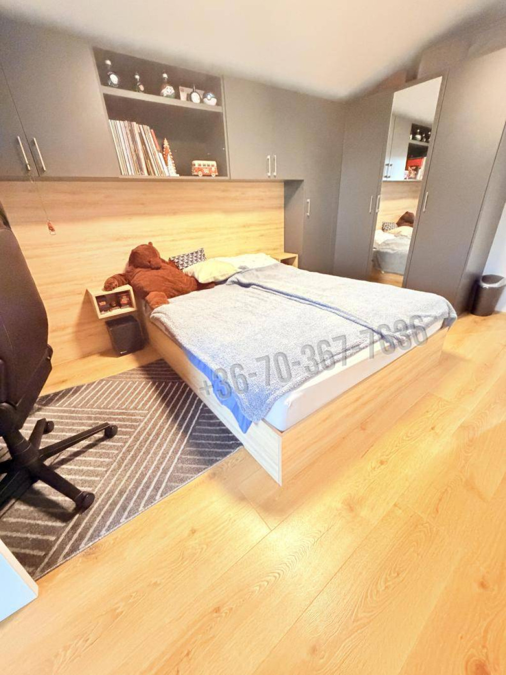 A felső szinten három hálószoba és egy gardrób vár, a két szobából közvetlenül kiléphetsz a fedett erkélyre, ahonnan a természet látványa minden nap új békét ad.