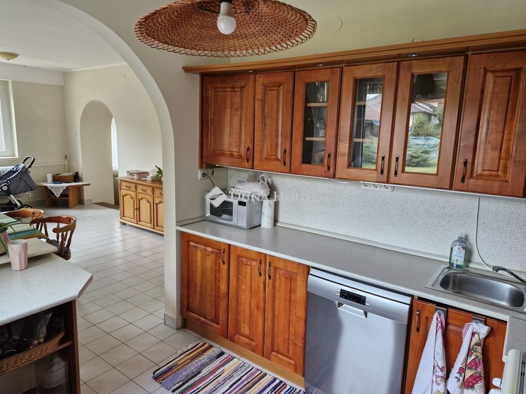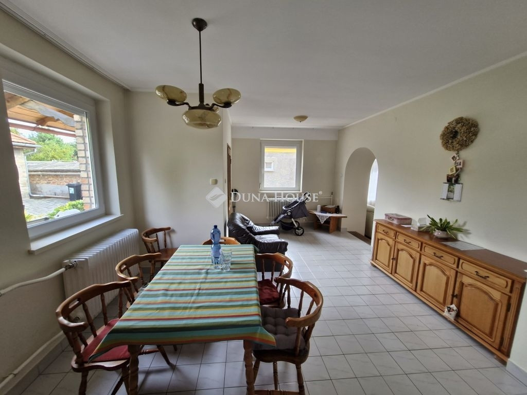 Tatán kertvárosban Öreg-tóhoz közeli utcában eladó egy földszintes, részben alápincézett családi ház.Az ingatlan jellemzői:telekméret 720 m2összközművesfúrt kút biztosítja a kert öntözésétA lakóépület a 60-as években épült szilikát falazattal, majd a 90-es években bővítették tégla falazattal. Ekkor új tetőszerkezet is készült beton cserépfedéssel.A laképület hasznos alapterülete 130 m2, melyben nappali + 3 szoba, étkező, konyha, előszoba, kamra, háztartási helyiség, fürd és wc került kialakításra.A tetőtér beépíthető ahol a falazások elkészültek és víz-villany fűtésvezeték felállásokat elvégezték.Részben alápincézett 45 m2 alapterülettel, itt gáz és fatüzelésű kazán került elhelyezésre.Az ingatlan jó műszaki és esztétikai állapotú, jó alaprajzi elrendezésű.A telken található még egy garázs-tároló épület részben alápincézve.Alapterülete 37 m2, az alatta lévő pince 27 m2-es.Az udvar parkosított és térkővel burkolt.