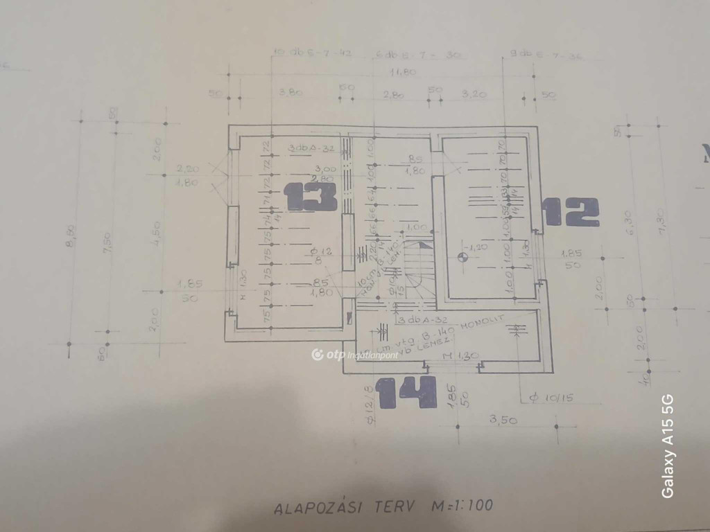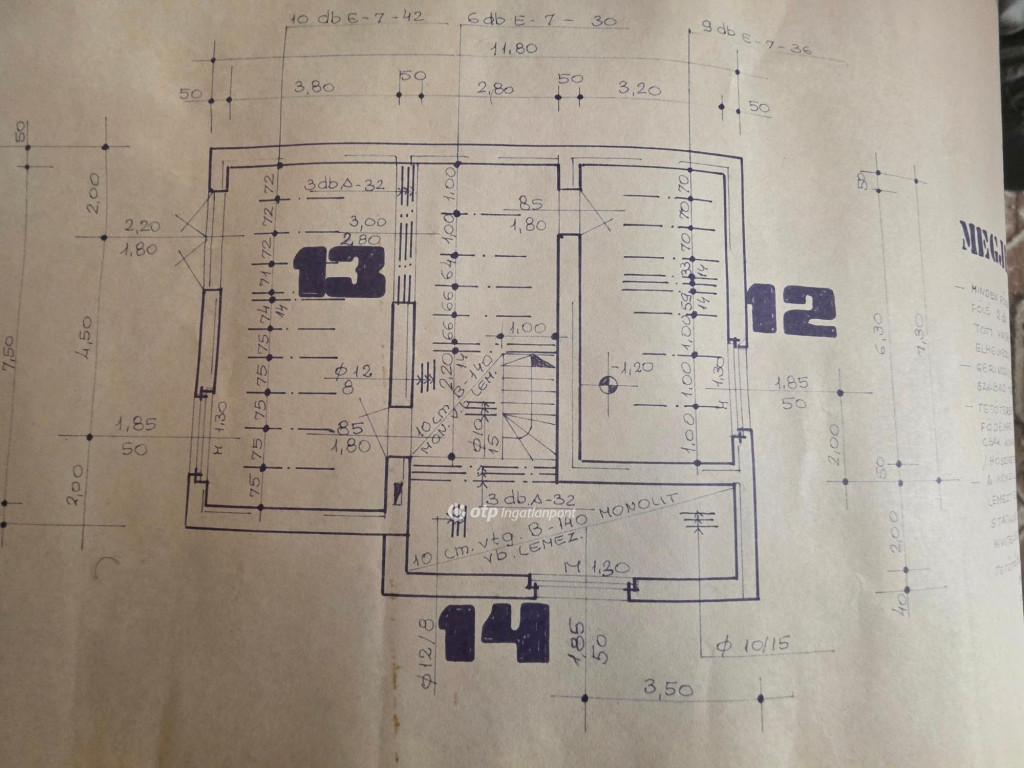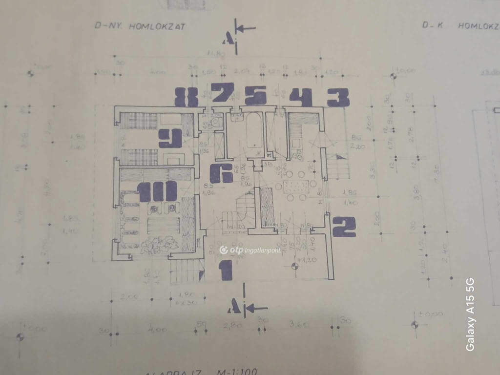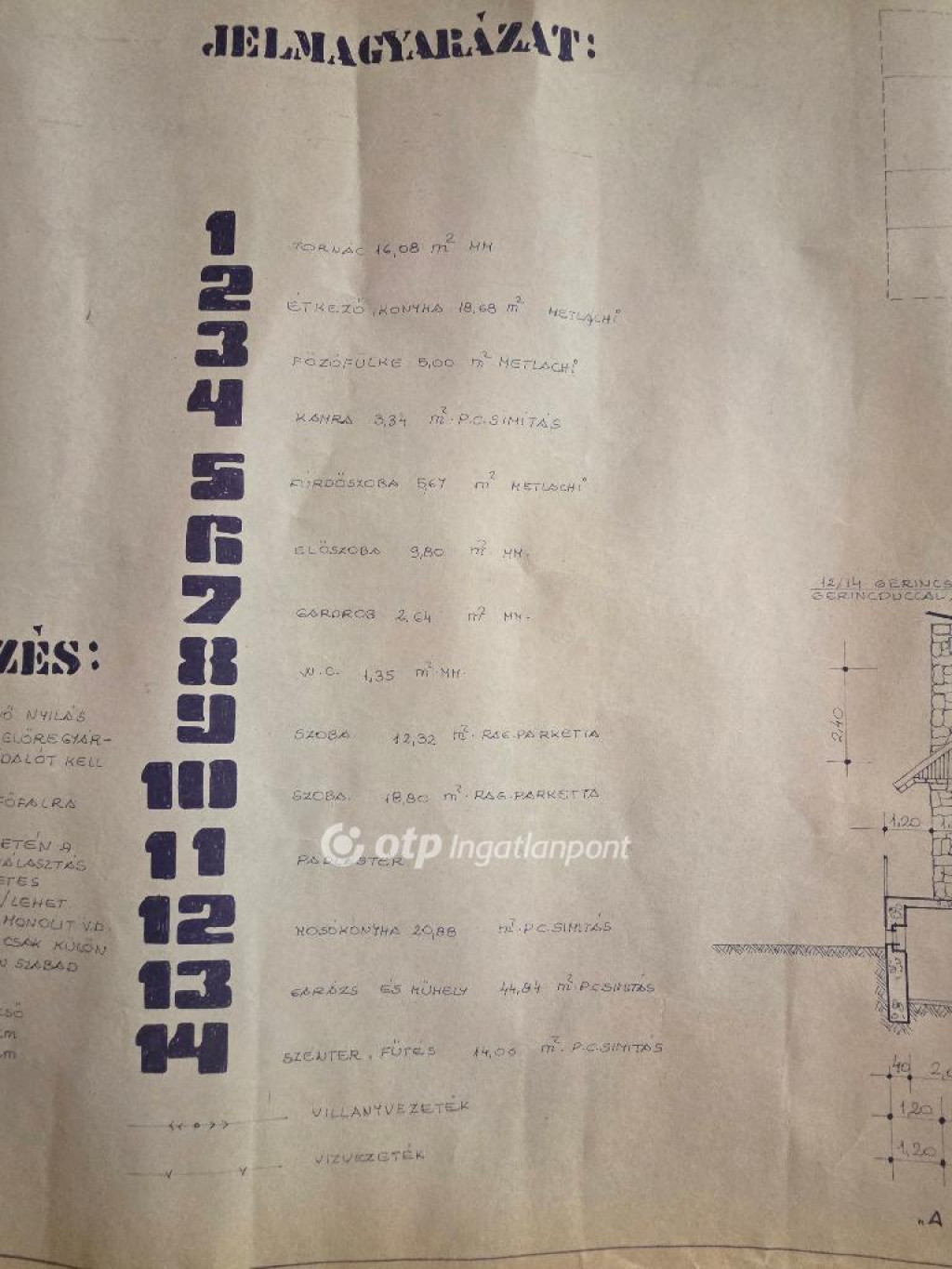 tetőtér beépithető, betöndödémes, palatetős. 1,9 m feletti rész 53,5 m2, teljes alapterület 93 m2