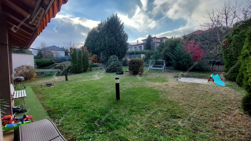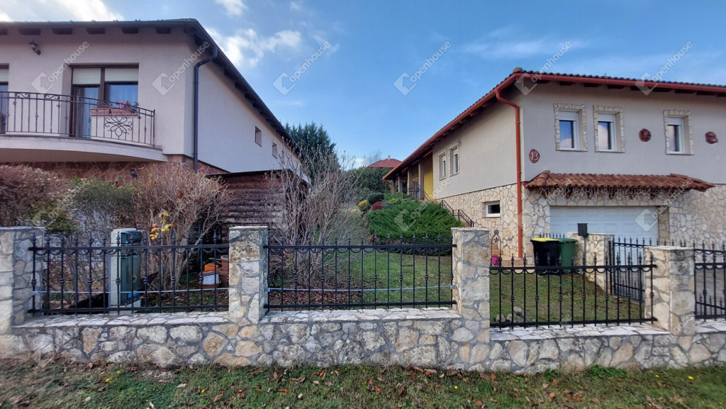 A ház lépcsős telken helyezkedik el, gondozott, parkosított kerttel, szemet gyönyörködtető kovácsoltvas kerítéssel, valamint egy 43 m²-es fedett terasszal, amely ideális helyszín családi és baráti összejövetelekhez.