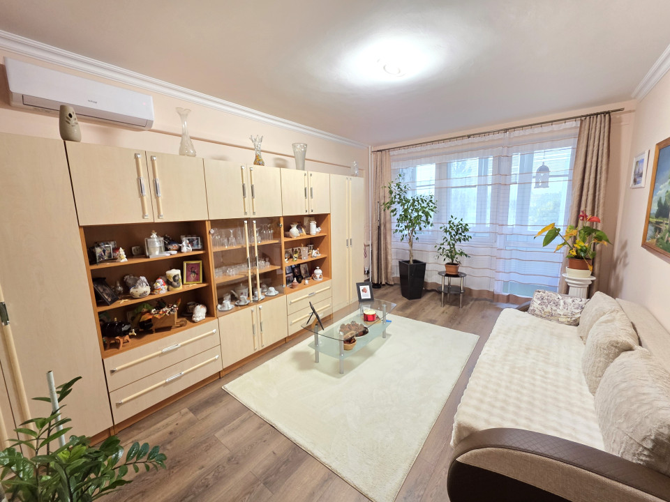 A honyha, valamint a folyosó két évvel ezelőtt került felújításra. A nyílászárók korszerű műanyag ablakok, az erkélyt beépítették. A villanyvezetékek korszerűsítése is megtörtént. A lakás elrendezése kiváló, folyosóról nyíló szobák, konyha, fürdőszoba és mellékhelyiség. A közös költség 12.000,- forint, a radiátorok hőmennyiségmérővel felszereltek. A lakásban a gáz nincs bekötve, a sütés-főzés elektromos tűzhellyel történik. A nappaliba pedig klíma került beszerelésre. A bútorok, háztartási gépek alku tárgyát képezik, megegyezés szerint maradnak.