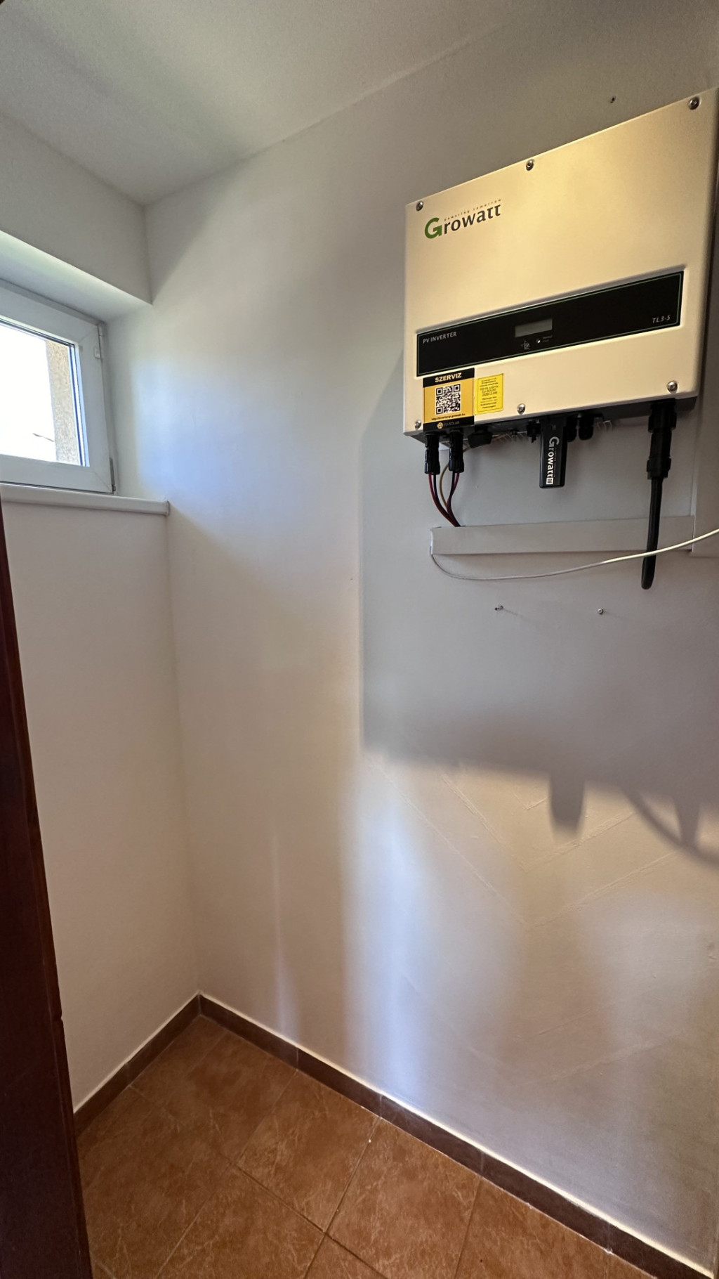 A villany 3X16 Amper, 2020-ban 6KW-os napelem rendszer lett kialakítva szaldós elszámolással, ennek köszönhetően áramköltség évek óta egyáltalán nincs.