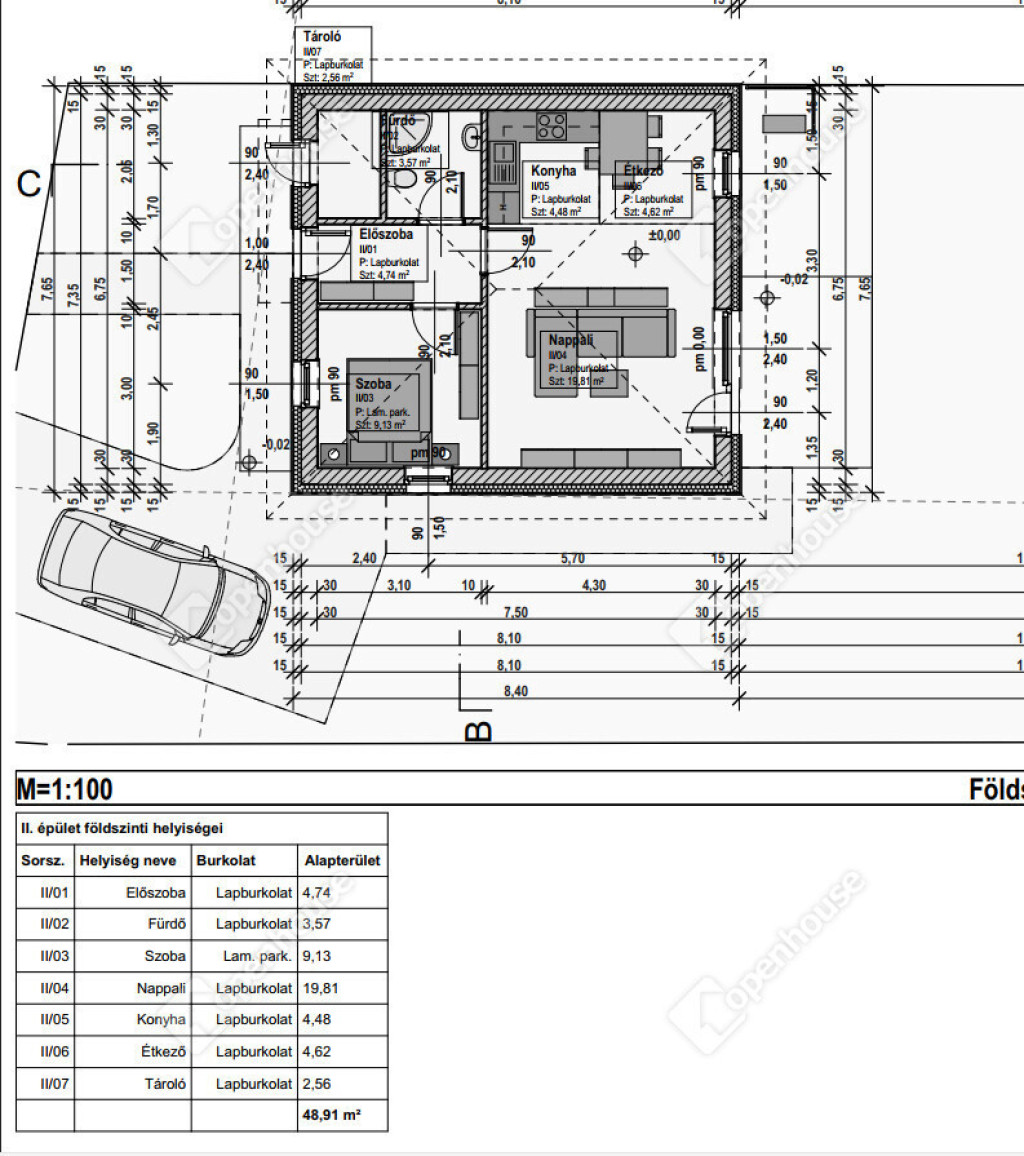 II. számú lakás – 48,91 m² | 59 millió Ft Fűzfa utca felől megközelíthető