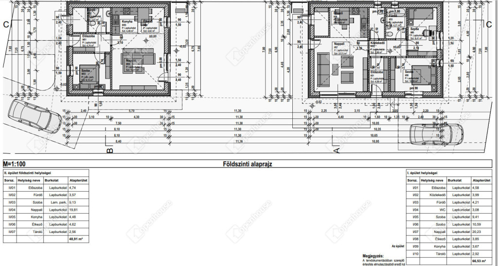 I. számú lakás – 66,53 m² | 79 millió Ft Kossuth kertalja utca felől megközelíthető