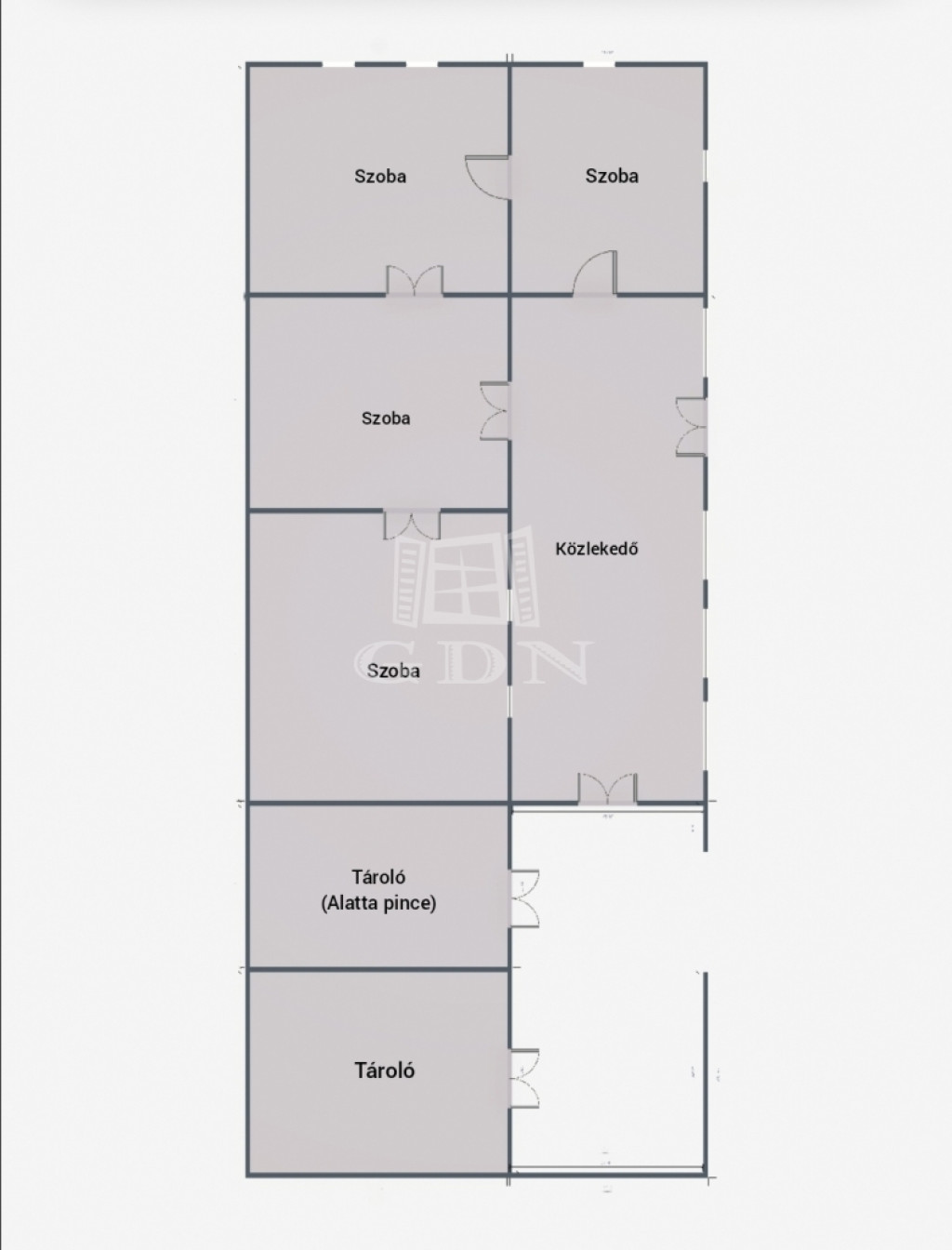 Innen nyílik még egy plusz kisebb szoba, mely alatt közel 20 m²-es pince húzódik.