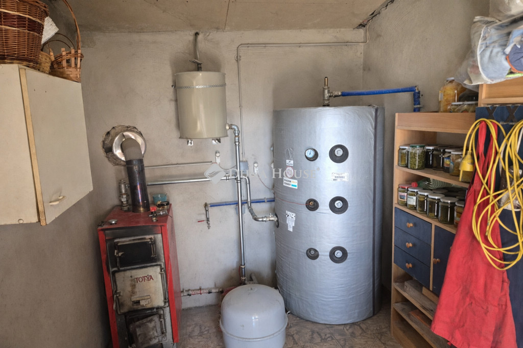 Sokoldalú fűtésrendszer: Padlófűtés és radiátorok gondoskodnak a melegről, melyet vegyestüzelésű kazán (500 literes puffertartállyal) és hűtő-fűtő klímák egészítenek ki.