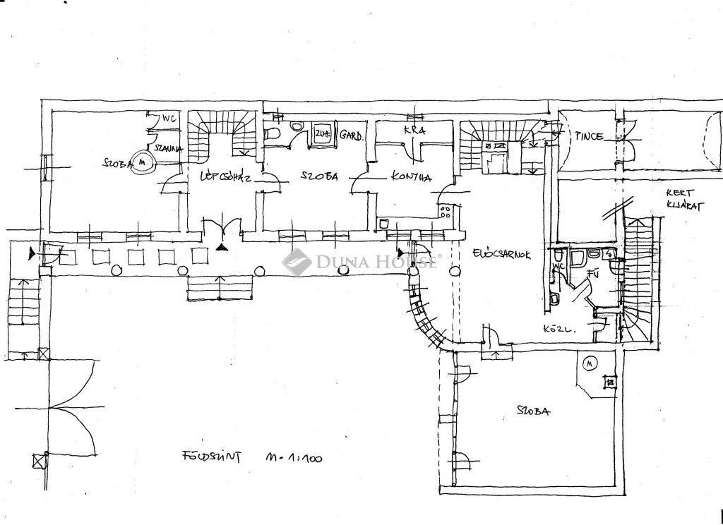 Szintek: pince földszint beépített tetőtér, szinteltolásos kialakítással