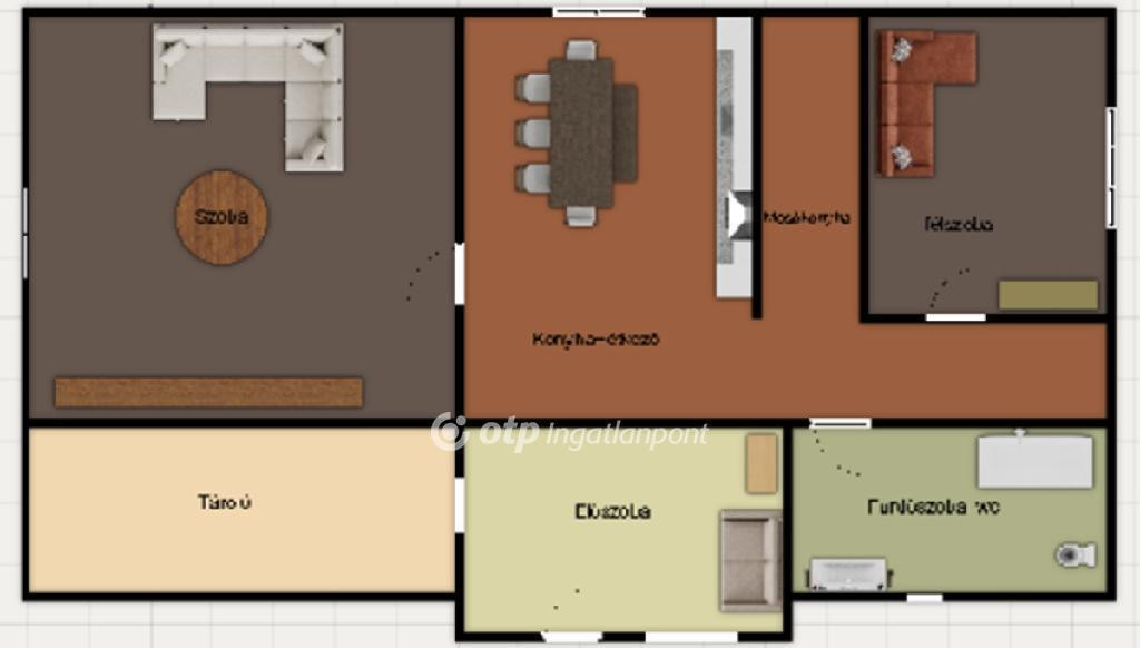 -a beltérben : előszoba , szoba , félszoba , konyha+étkező , mosókonyha , közlekedő , tároló , fürdőszoba+wc került kialakításra.