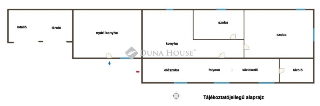 Helyiségei: nappali- szoba, szoba, konyha - étkező, gardrób, előszoba, folyosó-közlekedőnyári konyha, tároló