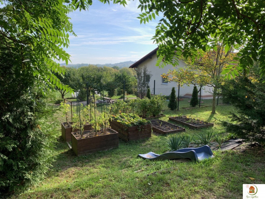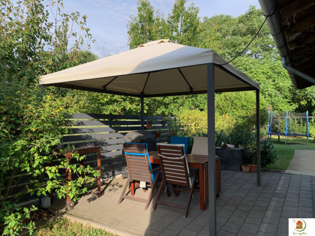 Terasz és gyönyörűen gondozott kert biztosítja a család pihenését.