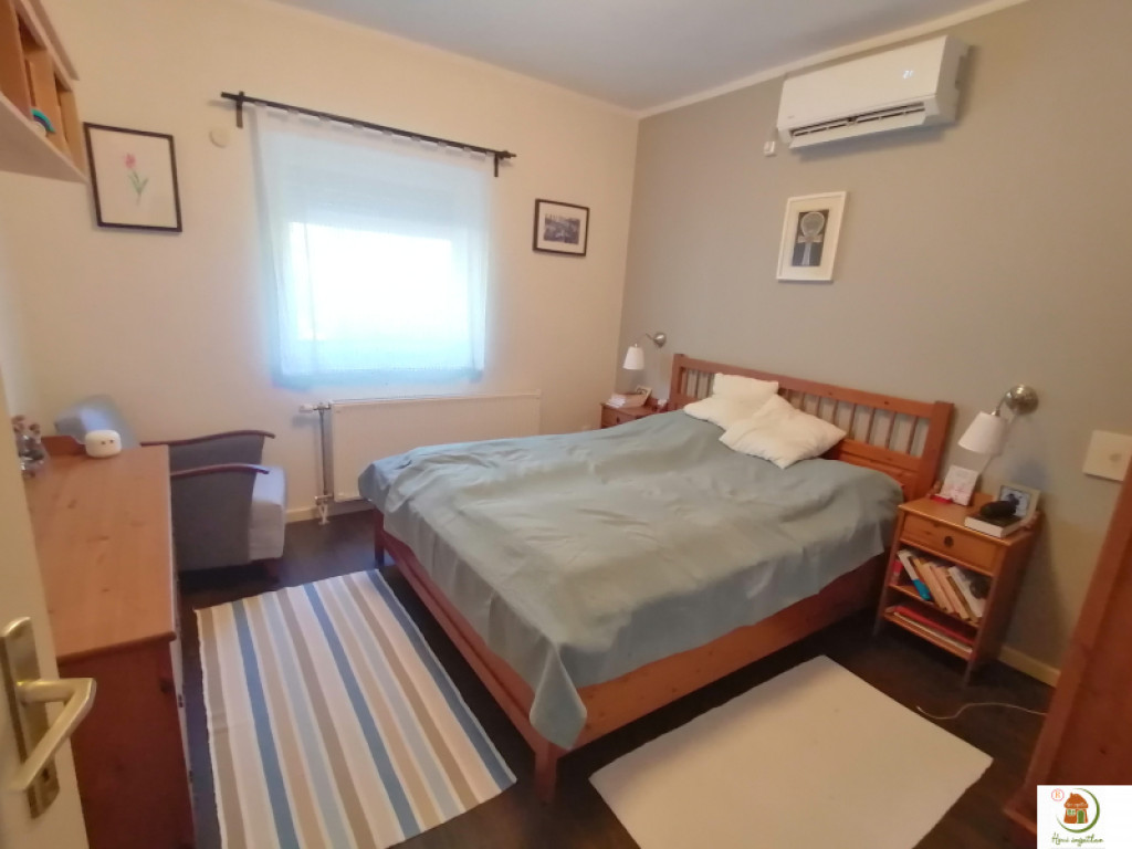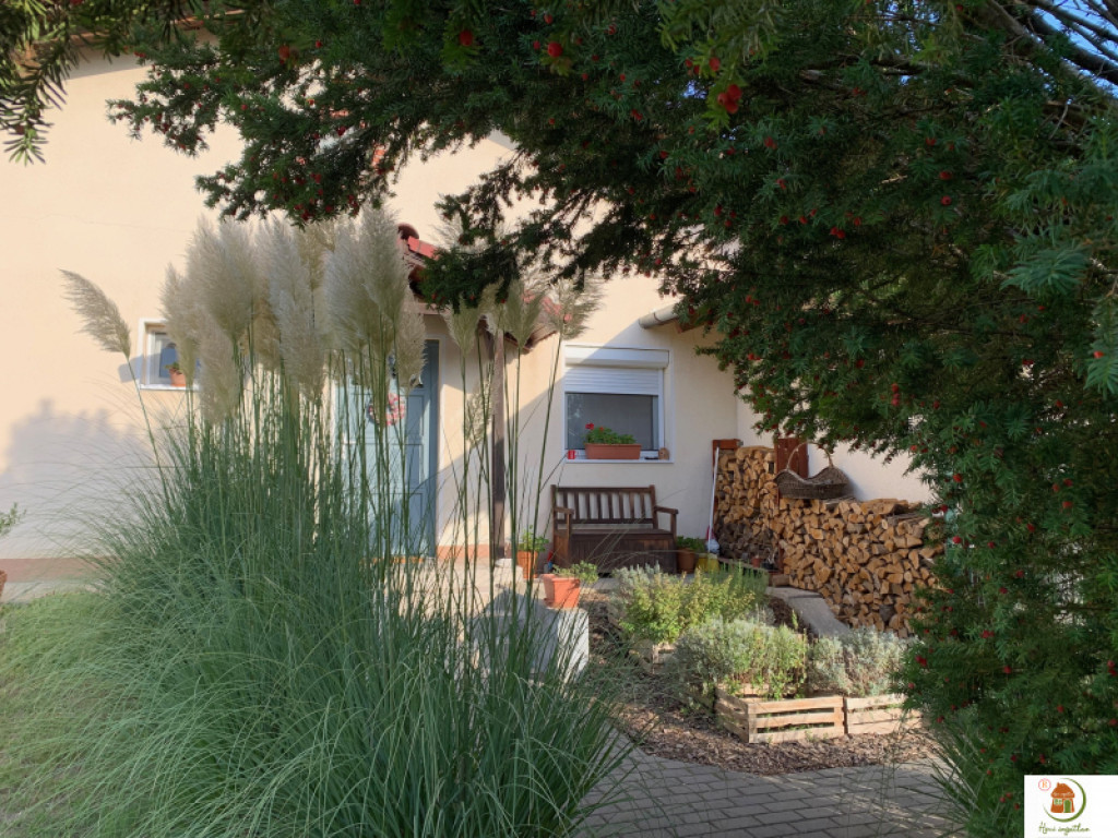 A ház 2004-ben épült 38-as porotherm téglából 130 m2 +40 m2-es hasznos alapterülettel. Az elmúlt években több esztétikai és műszaki felújítás történt, 2021-ben új vizesblokkokat, burkolatokat kapott, majd 2023-ban egy 7,4 kW-os napelemrendszer, 2025-ben pedig három inverteres klíma került beépítésre. A fűtésről kondenzációs gázkazán és kiegészítésként egy téglakályha gondoskodik, ami a lakóteret önállóan is befűti, így a fűtési költség minimális.