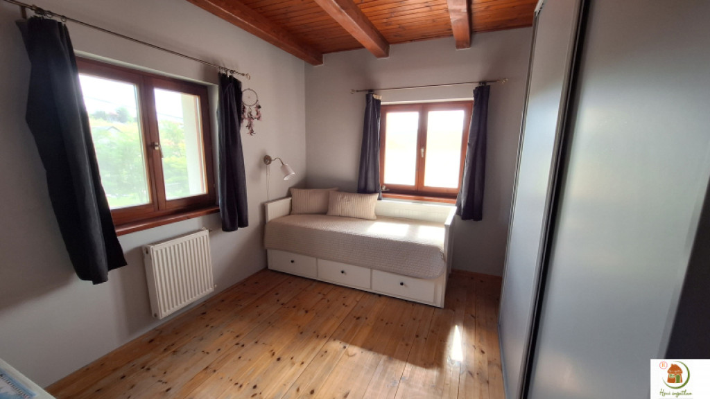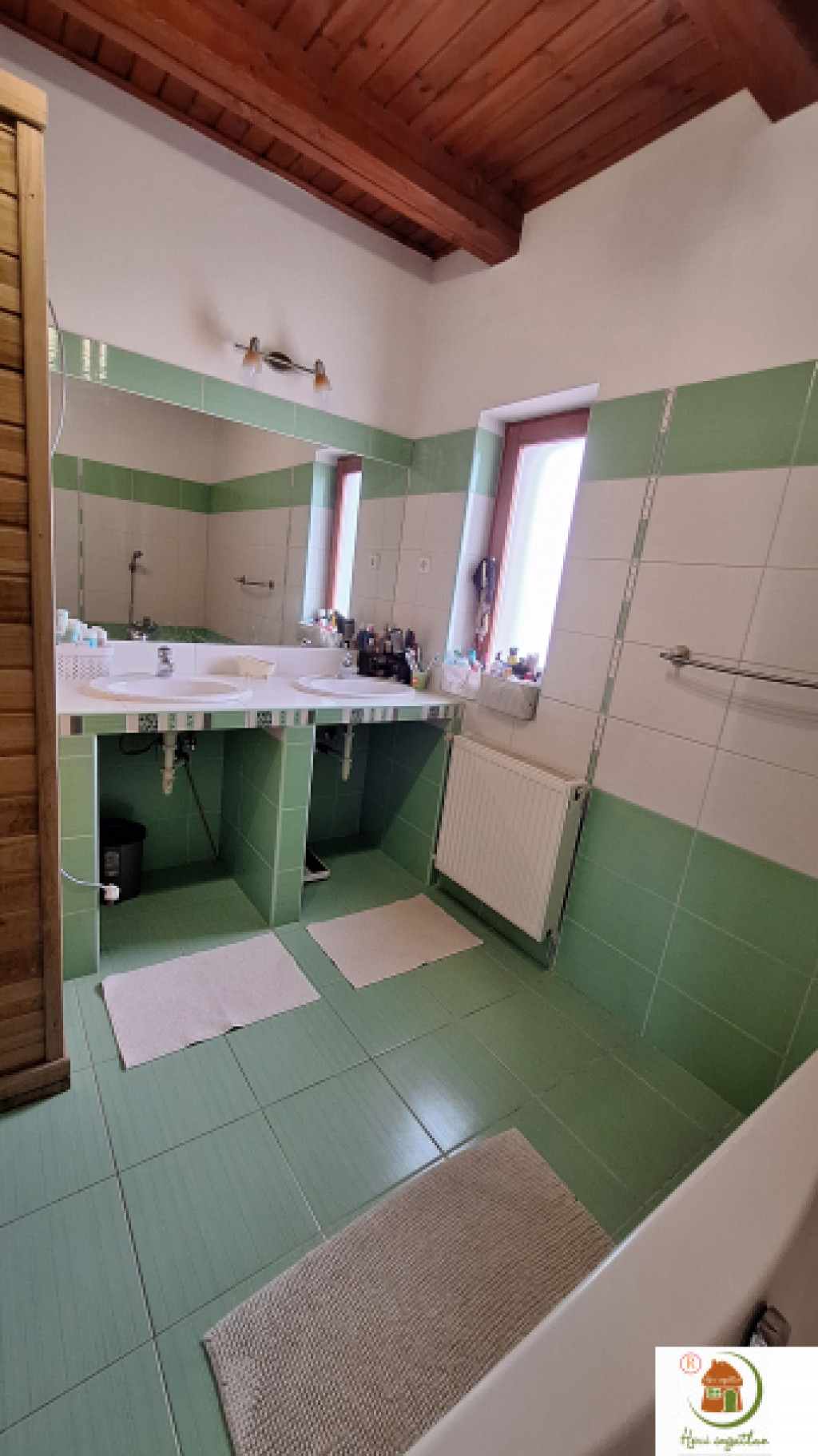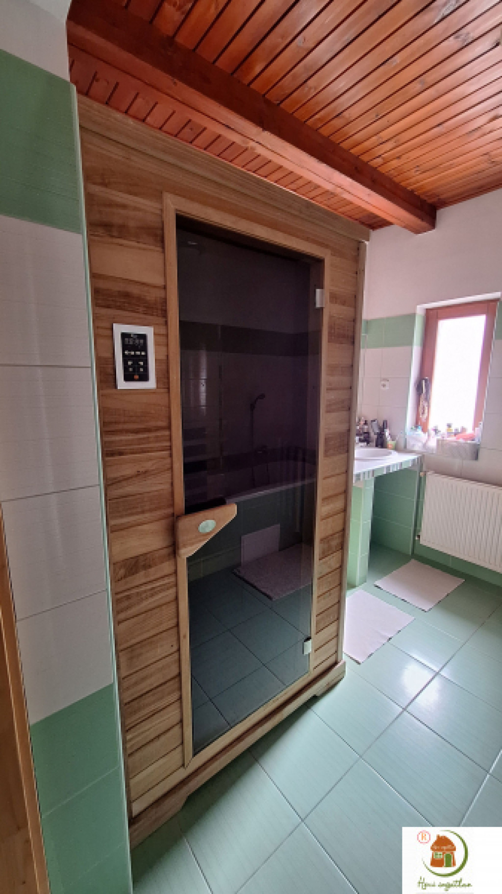 Tinnye panorámás utcájában otthonos hangulatú, kényelmes, élhető ház garázzsal eladó. 2008-ban épült, azóta folyamatosan karbantartott állapotú, nemrég homlokzati hőszigetelést is kapott. Otthos hangulatát a látszógerendás fafödém, faablakok, fakorlát, és a fa parketta adja.